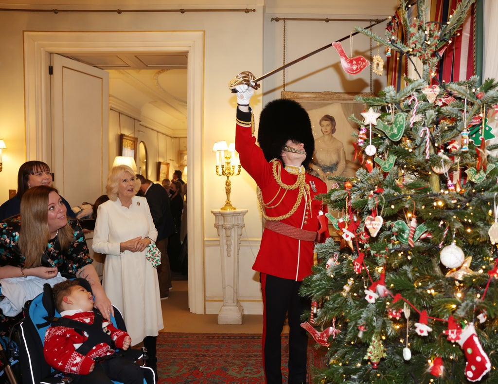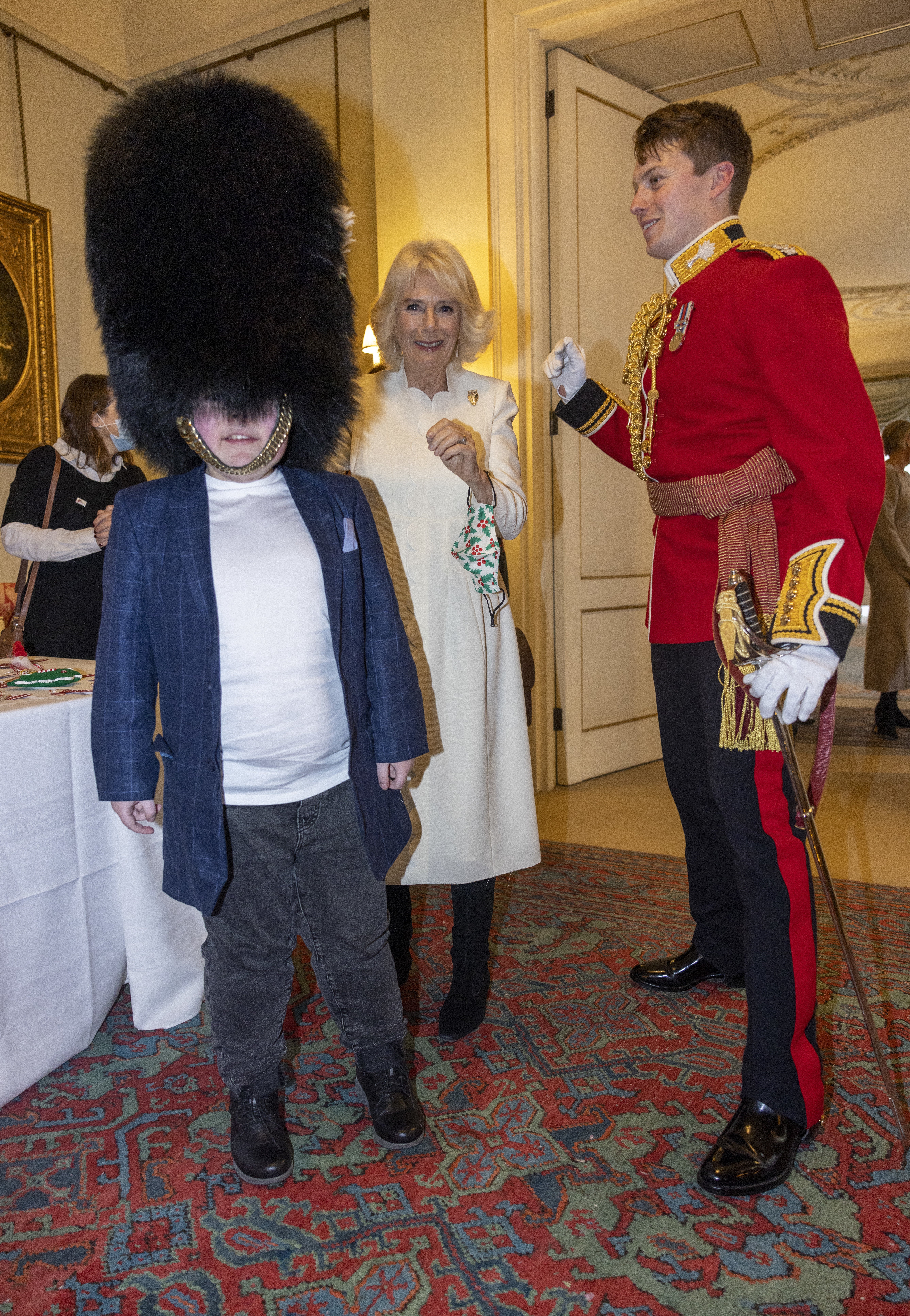 Camilla said: “This is Ed here. He’s going to help you decorate the tree. And if you ask really nicely, he might let you try on his bearskin.”