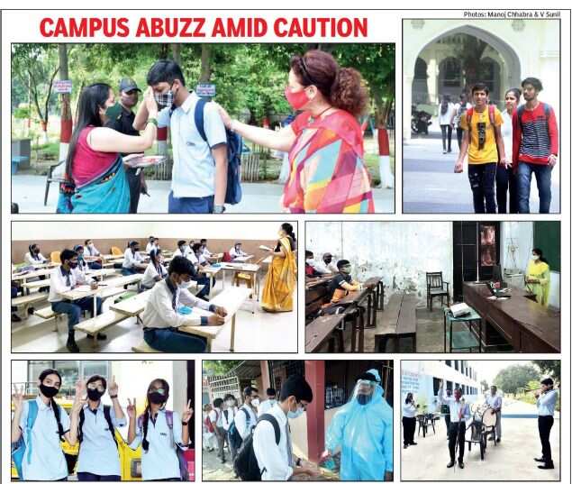 LUCKNOW: School campuses came back to life after a gap of five months on Monday when students turned up for physical classes after March when schools suspended offline studies due to Covid-19.