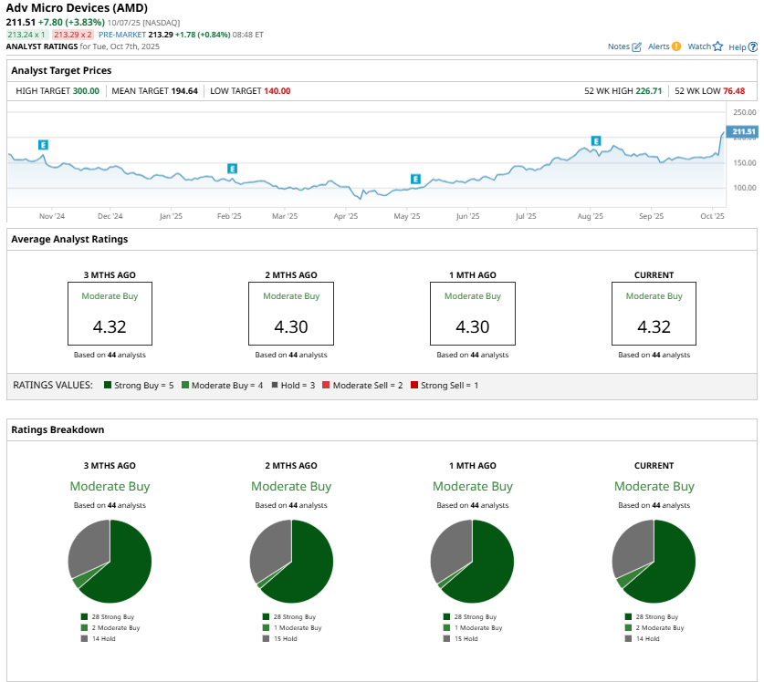 AMD stock trades at a forward price-earnings (P/E) multiple of 64.75x. Analyst forecasts suggest that AMD’s earnings could grow 63.4% in 2026, which justifies today’s premium valuation. If the OpenAI deal unfolds as planned and AMD continues expanding its AI footprint, its share price could have room to climb further. The warrant structure also gives both companies a shared incentive to make the partnership a success.