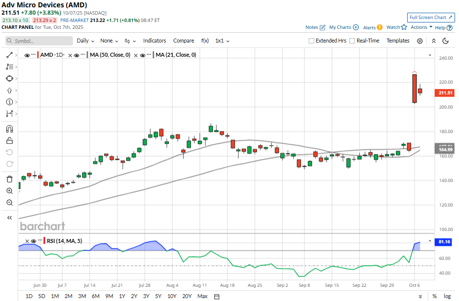 Shares of Advanced Micro Devices (AMD) have rallied over 85% year-to-date. AMD stock got a significant boost from its recently announced strategic partnership with OpenAI. The deal, valued in the billions, is likely to reshape AMD’s technology roadmap, accelerate its revenue trajectory, and boost its earnings potential.