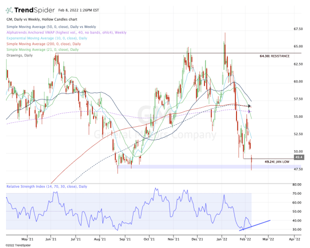 However, shares are reversing, with GM stock reclaiming the January low at $49.24. This is key for the bulls.