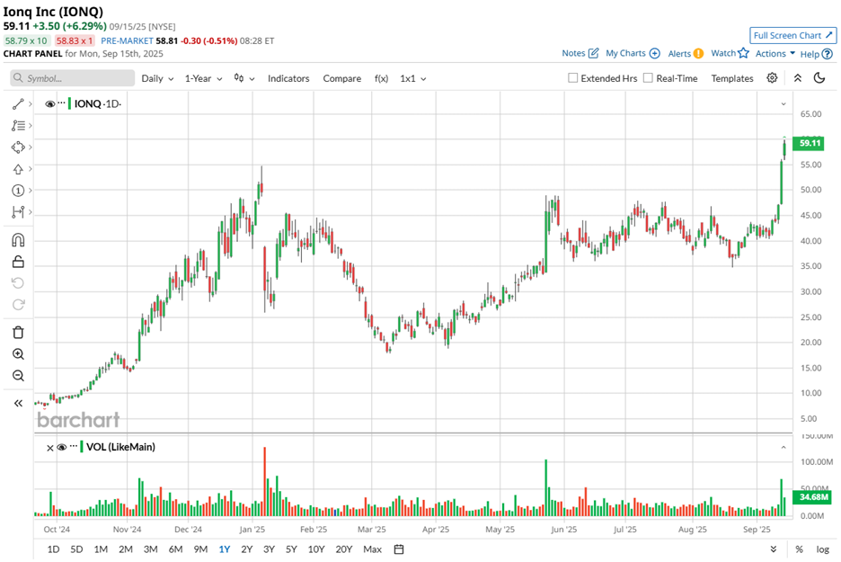 With a market capitalization of roughly $19.4 billion, the company is steadily investing in research and development to push the frontier of computational power. Investors have already taken notice. Over the past year, IONQ shares have climbed 753%. In the last six months alone, they have surged 194%. Even on a shorter horizon, the stock has shown vitality with a 66% rise in just the past month.