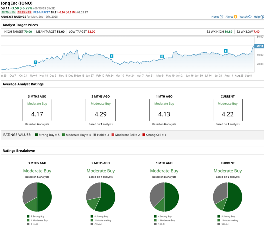 The broader analyst community has shown confidence, assigning IonQ a consensus rating of “Moderate Buy.” Out of the nine analysts covering the stock, five recommend it as a “Strong Buy,” one leans toward a “Moderate Buy,” and three advise a “Hold” rating.