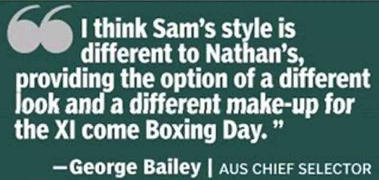 "I acknowledge that it's a tough call on Nathan," Bailey said on Friday. "It's been a challenge at the top of the order for both teams. I think Sam's method, his style, is different to Nathan's, providing the option of a different look and a different make-up for the XI come Boxing Day. We'd like the ability to throw something different at India."