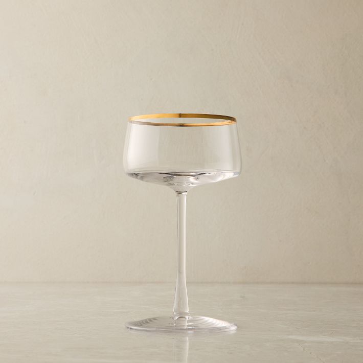 These gold-tipped glasses are the epitome of understated luxury – their sleek angular design and gently tapered stems make them truly unique.