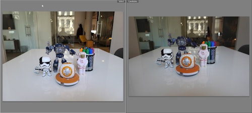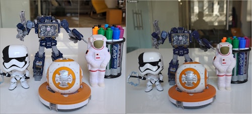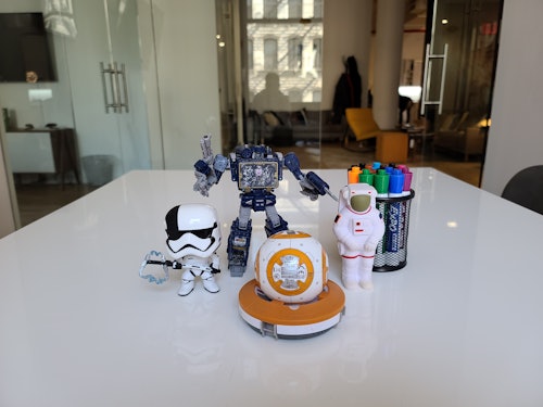 I didn’t have my other cameras with me at the time of the cookie eating, so I did a small still-life shoot on a table with about a foot between the camera and the objects. Just like in our camera comparison, the S20 Ultra focused slightly behind where we wanted it: on the transformer rather than headless BB-8.