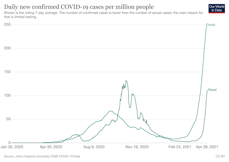 India is particularly concerning. Last year, some researchers and politicians claimed that cities such as Mumbai, Delhi and Chennai might have reached herd immunity. Yet following a relaxation in control measures and border controls, India and Nepal are currently experiencing a devastating second wave.