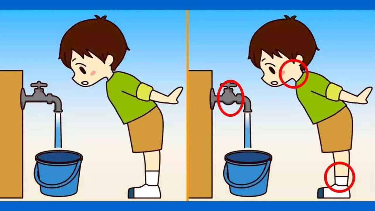 Engage in these challenges to enhance your concentration and attention span. In this illustration, you'll find pictures of a boy filling a bucket under a tap. At first glance, the images seem nearly identical. However, we must clarify that there are subtle differences that, despite their minuteness, are still distinctions. You have only 30 seconds to identify all three differences... Are you ready? Go! 30... 20... 10, 9, 8, 7, 6, 5, 4, 3, 2, and 1! Stop!