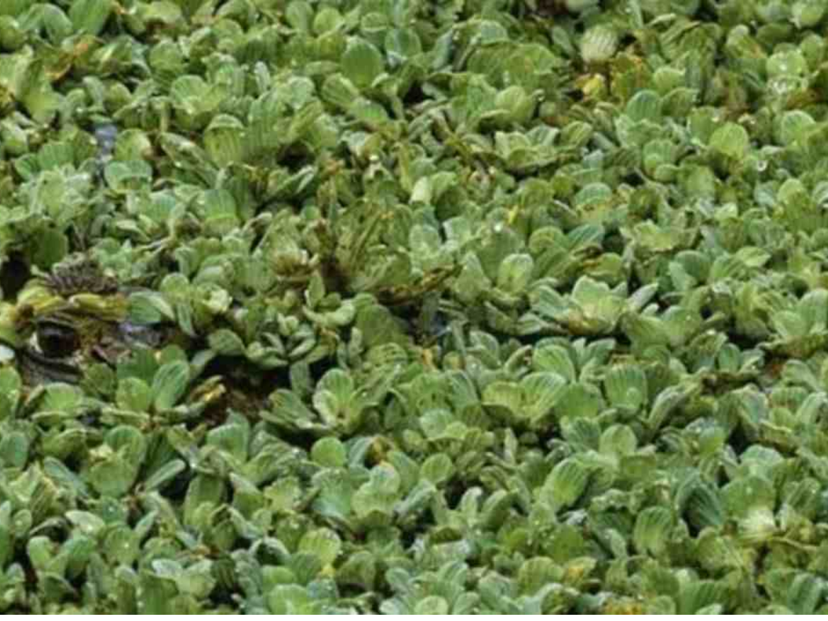 The rough and dense vegetation all over the water surface makes it look as if this part of the water is not used by the human beings staying nearby thus making the vegetation grow so densely.