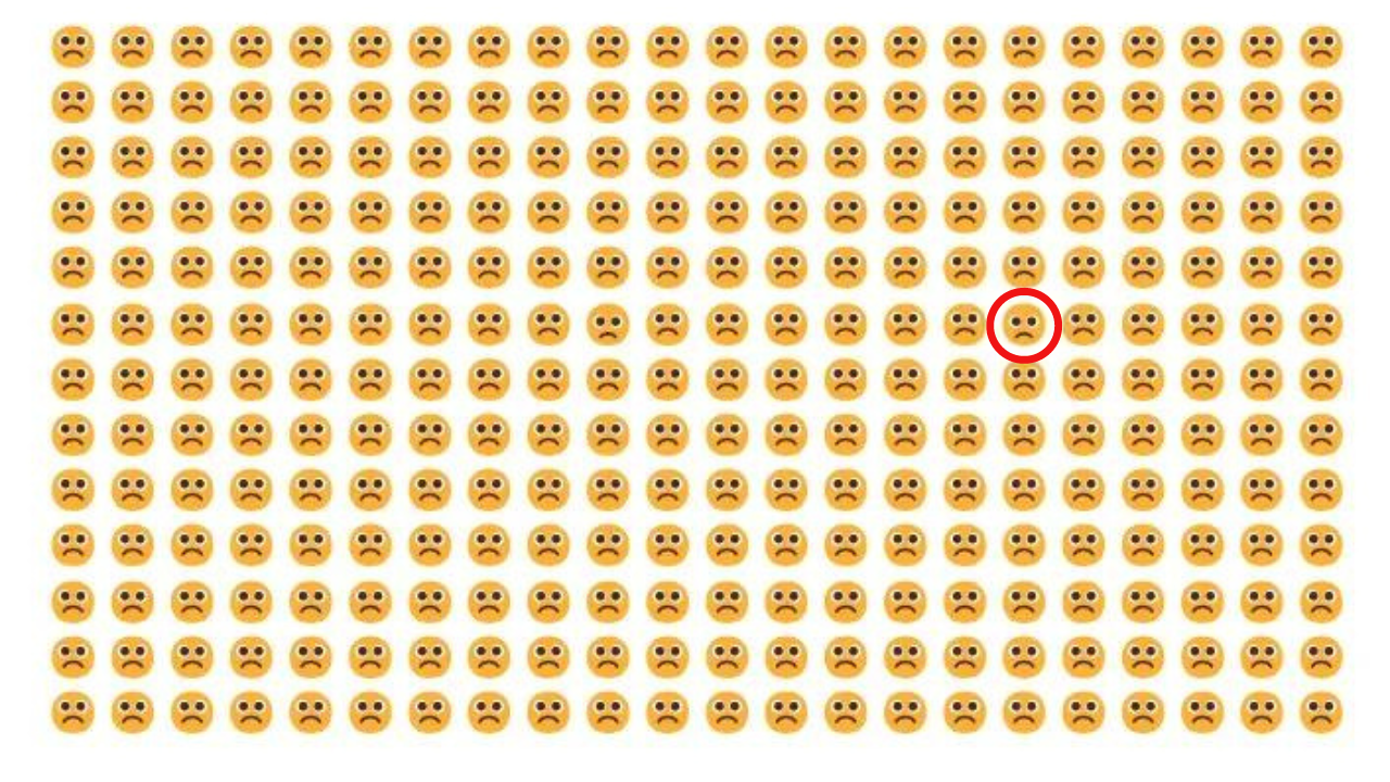 Your mission is simple in this mind-bending optical illusion: locate the one emoji that doesn't quite match the others. It seems simple, doesn't it? Rethink your thoughts. Finding the odd one out is not easy when there are 286 frowning faces staring back at you.