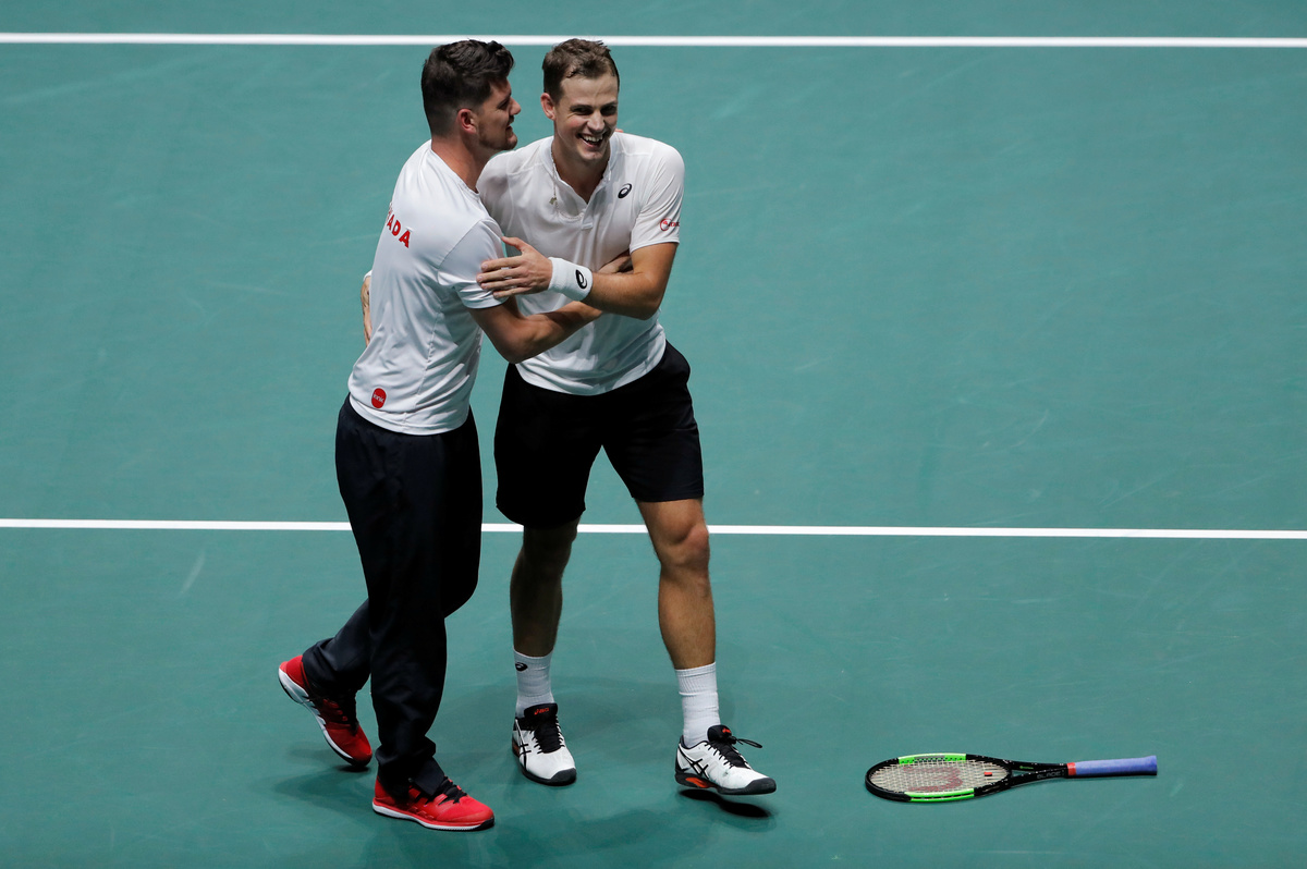 For the second day in a row, 150th-ranked Vasek Pospisil gave them the perfect start before 20-year-old Denis Shapovalov finished the job to make it two wins from two in Group F.
