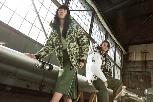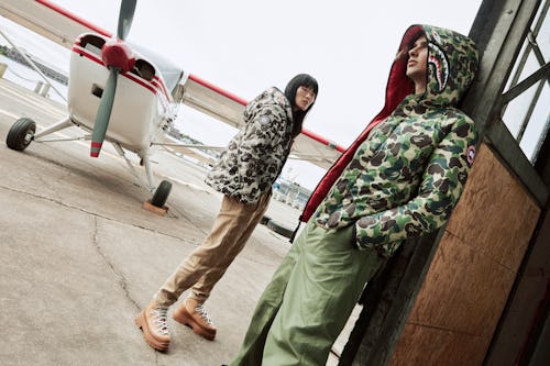 The Expedition Parka in this collection reimagines the one originally designed for scientists in Antarctica’s frozen tundra, complete with a down-filled hood, customizable fit waist, and a built-in, hide-away nylon elasticized snow skirt. Inspired by the one for bush pilots in Northern Canada, the Chilliwack Bomber has the same functionality as the original with reinforced elbows, interior backpack straps, and five exterior pockets. As for the reversible Crofton Shark Hoody, the piece was made with layering in mind, sporting BAPE’s Shark logo on the full-zip hood and CAMO on the Recycled Feather-Light Ripstop fabric -- Canada Goose’s 100 percent recycled and water-resistant nylon.