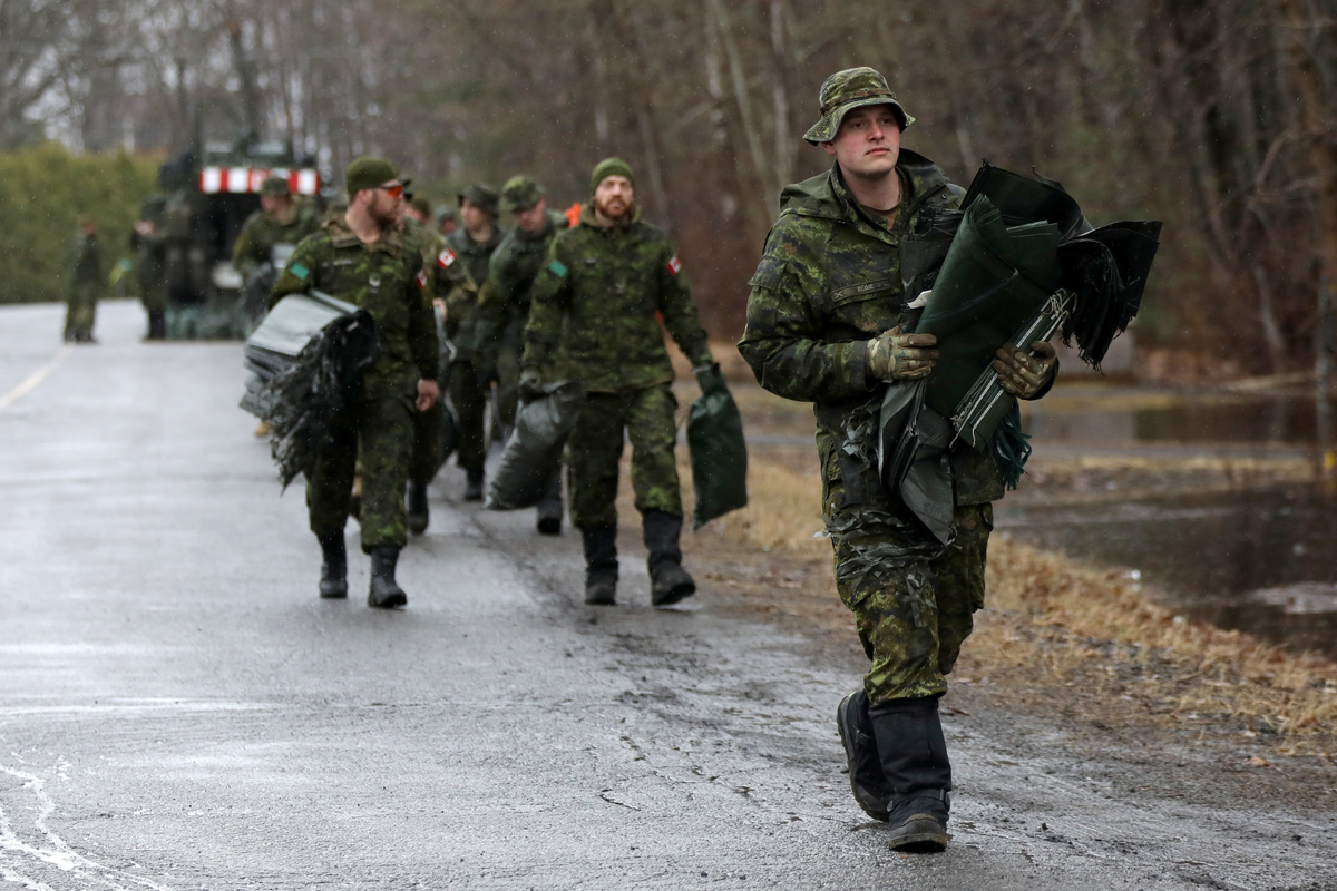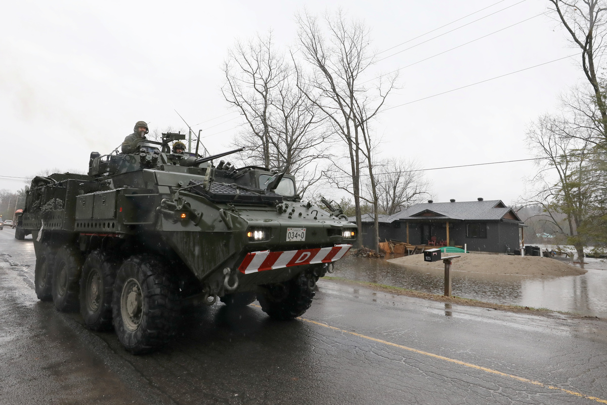 Light armored vehicles carrying Canadian troops rolled into an already waterlogged community west of the city's downtown around midday on Friday, with soldiers helping residents load sandbags into trucks and boats to shore up their properties.