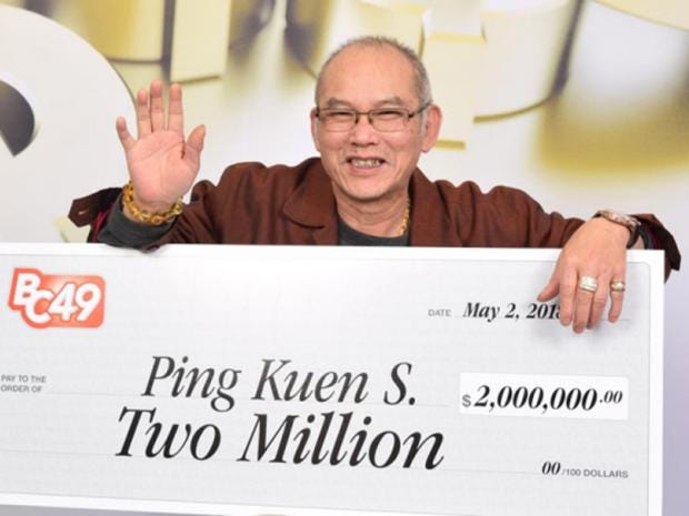 In that night's draw his $1 ticket matched all six numbers to win the jackpot, overcoming what the British Columbia Lottery Corporation (BCLC) said were odds of one in 13,983,816.