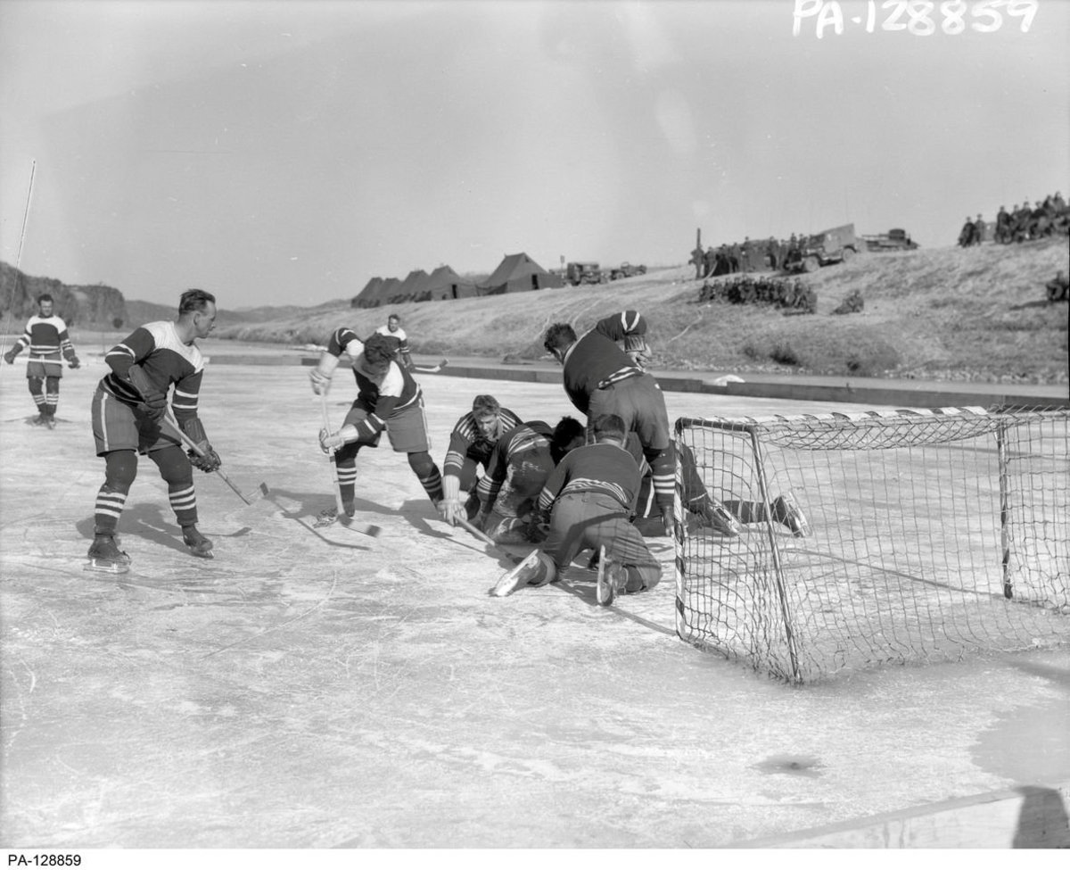 It only became real when his acting company commander ordered him to come down from his position on the front and swap his rifle for an ice hockey stick.
