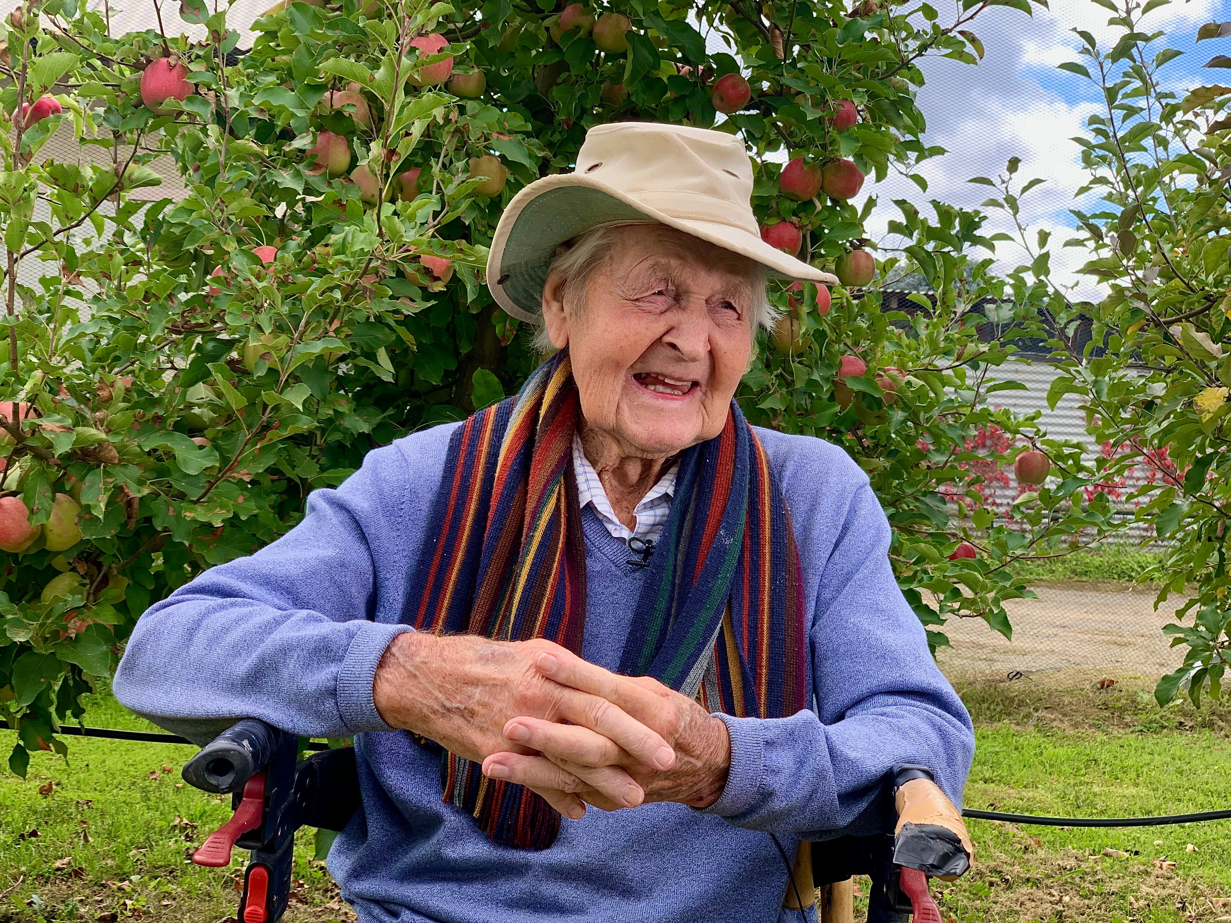 Bert credits fresh cow's milk every morning to his longevity, as well as eating an apple a day from the orchard he later planted once he decided to move on from hen farming.