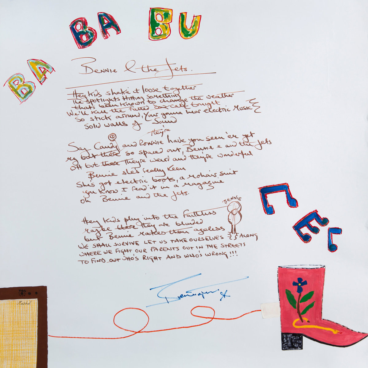 Songwriter Bernie Taupin, the man behind more than 40 of John's hit songs, is selling a collection of his original lyrics, as well as colorfully illustrated versions of songs like "Bennie and the Jets" and "Yellow Brick Road," Julien's Auctions said on Monday.