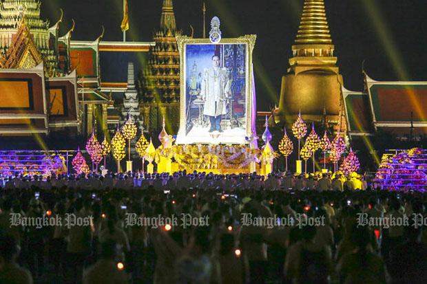 The candle-lighting ceremony was held at Sanam Luang and in other provinces in front of a portrait of the late King. Prime Minister Prayut Chan-o-cha led all Thais in lighting the candles at Sanam Luang in memory of his passing.