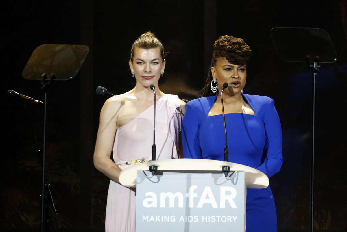 71st Cannes Film Festival - The amfAR's Cinema Against AIDS 2018 event - Auction - Antibes, France, May 17, 2018. Milla Jovovich and Ava DuVernay, member of the 71st Cannes Film Festival Jury conduct the auction. REUTERS/Stephane Mahe