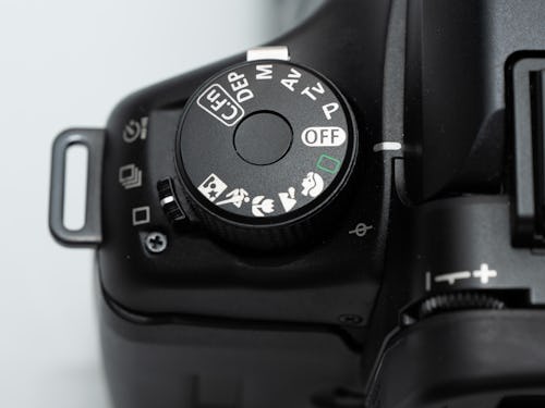 Over on the left-hand side, we have the mode dial and the drive lever. The modes work exactly the same as they do on modern DSLRs, and if you’re using an autofocus lens, you can just put it in Auto (the green box) or P mode (also basically auto), and just go to town.