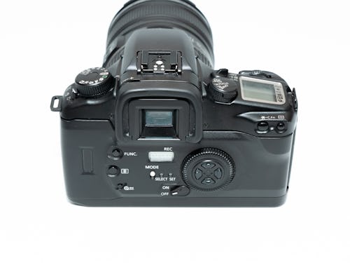 Once you have your film loaded, CR123A batteries installed, and EF lens mounted, you turn the camera on by rotating the mode dial to your intended mode. Then you’ll make sure your settings are good in LCD, put your eye up to the viewfinder, and snap a picture.
