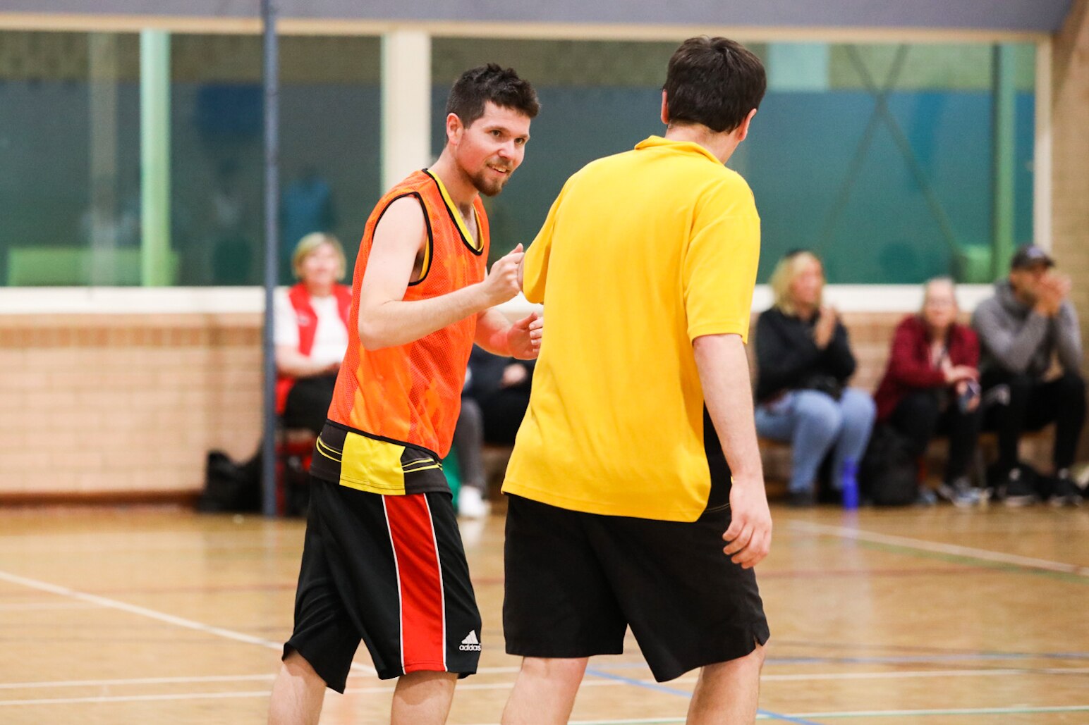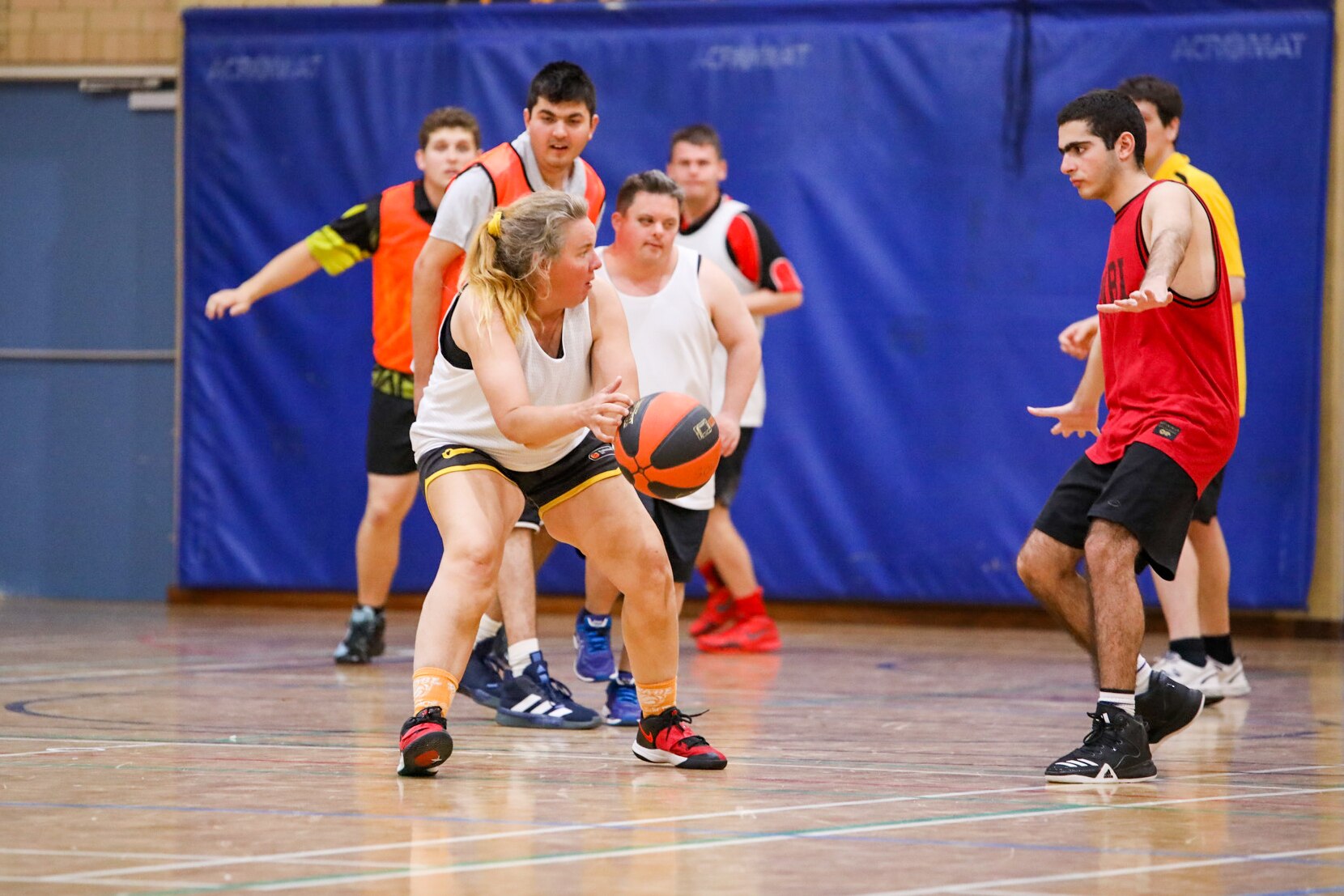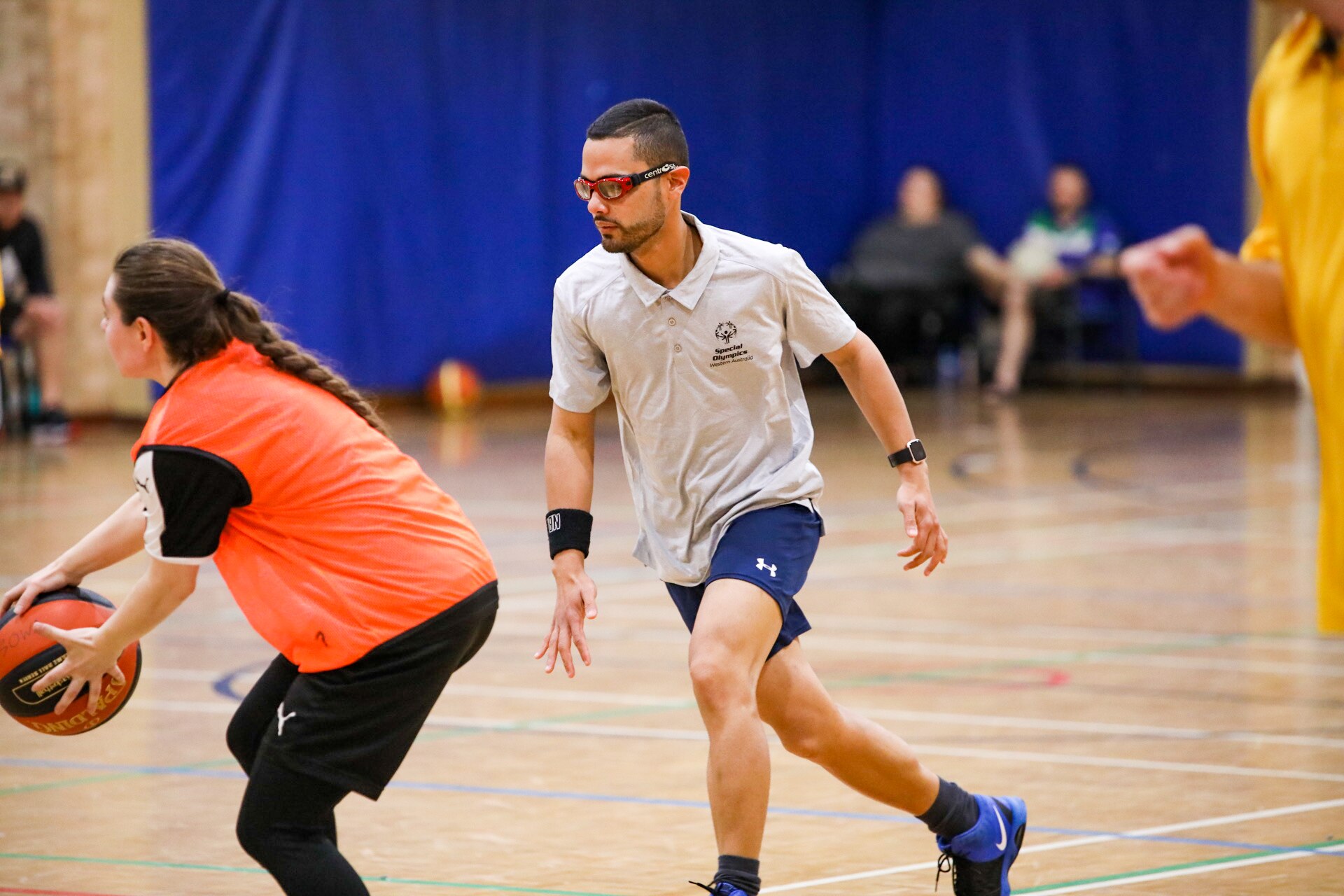 Competitors Andres Guzman and Kellee Thomas took to the court for the basketball competition.