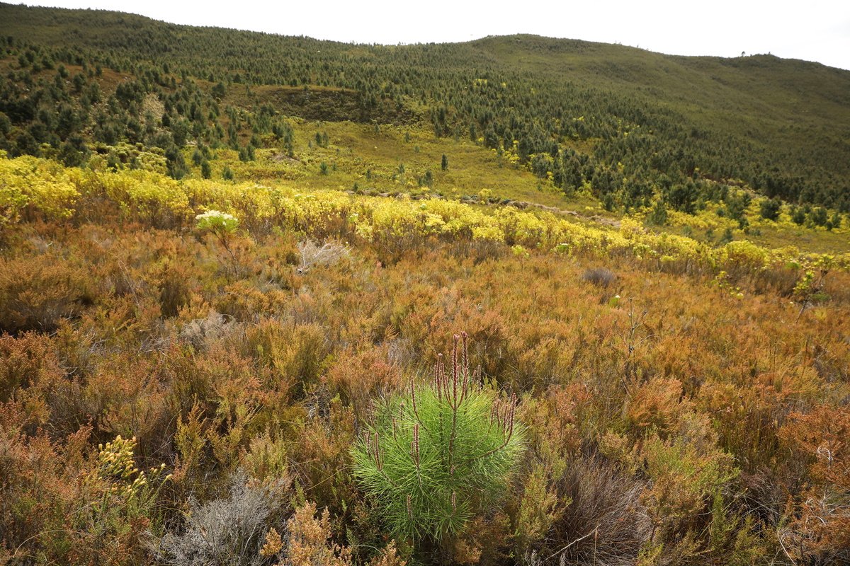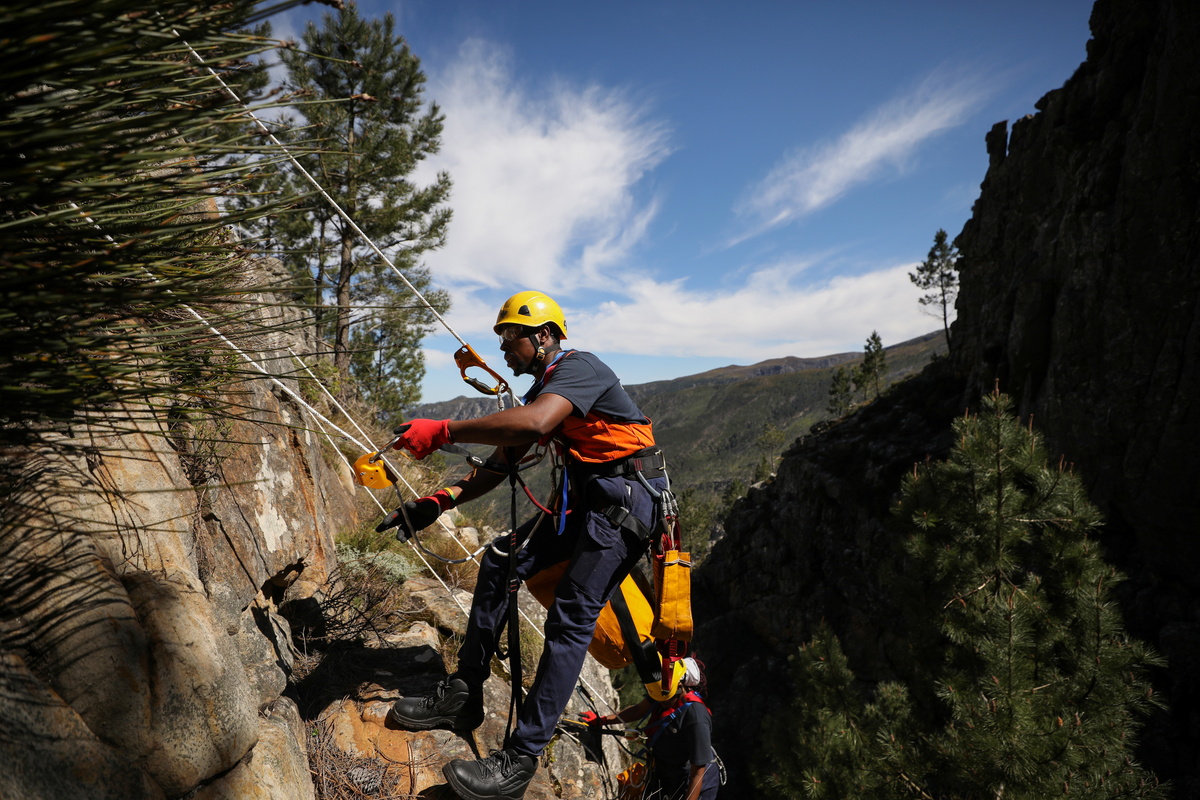 Using hand saws to cut saplings while dangling over craggy cliffs, the team is targeting infestations of alien tree species, mainly pine but also Australian acacia and eucalyptus, that carpet swathes of mountainside in dark green foliage.