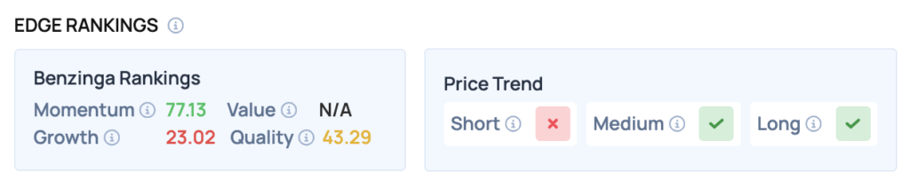 Benzinga Edge Rankings: Despite the day’s decline, Benzinga Edge stock rankings show Capital One has a strong Momentum score of 77.13.