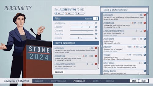 While exploring those “life-shattering outcomes” in the confines of a game might not be for everyone, there’s no question that the mystique and, yes, circus-like atmosphere of American politics has created a very real audience primed for this type of entertainment, after years of binging Veep and The West Wing. Still, it’s easy to see a game like this coming across as glib and caricatured on one side, and at the same time being dull and dragged down by the more picayune and uninteresting aspects of politicking. Furthermore, it’s not as if politics today has a great reputation to begin with; the acrimony, self-aggrandizing, and frequent ineptitude that’s come to define the real-life Washington could just as likely turn people off from wanting to spend their free time immersed in a digital version of it. The question in part becomes whether there are not only enough people who, like Nelson, are already onboard as both political obsessives and committed gamers, but also enough prospective players who don’t necessarily share both interests already.