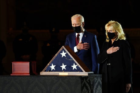Officer Sicknick was honoured in a ceremony at the Capitol in February, that was attended by Joe Biden and first lady Jill Biden.