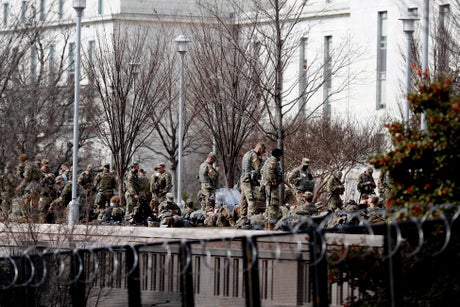 Guard forces were scattered around the city, helping to secure the Capitol, monuments, Metro entrances and the perimeter of central D.C., which was largely locked down for several days leading up to Wednesday’s inaugural ceremony.