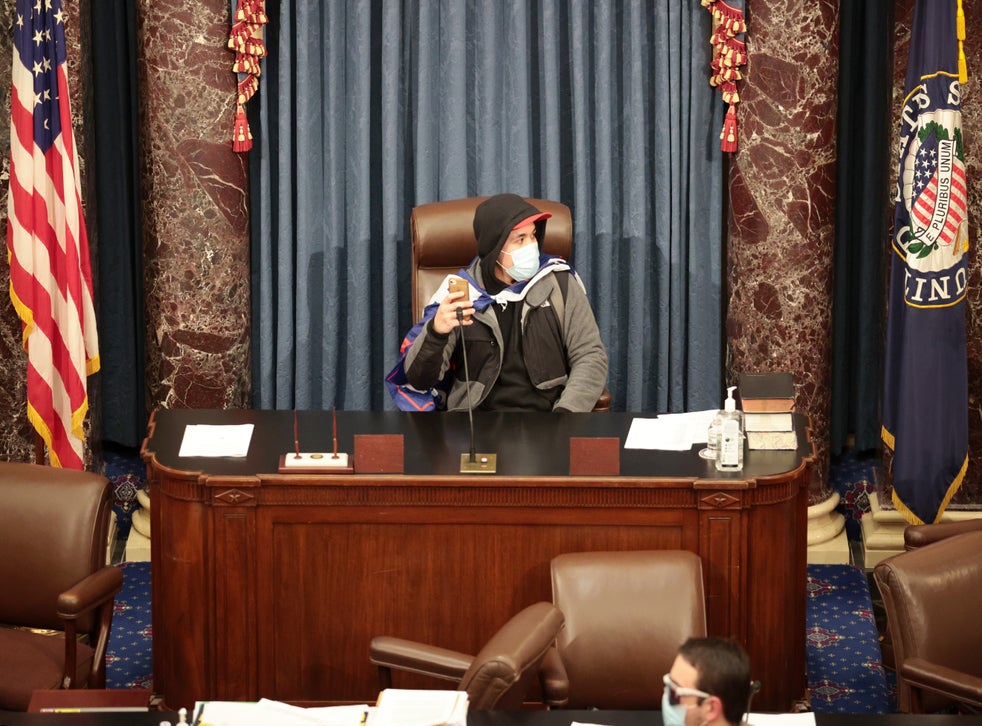 Rioters were also seen inside the Senate chamber. One person got up on the dais and yelled “Trump won that election.”