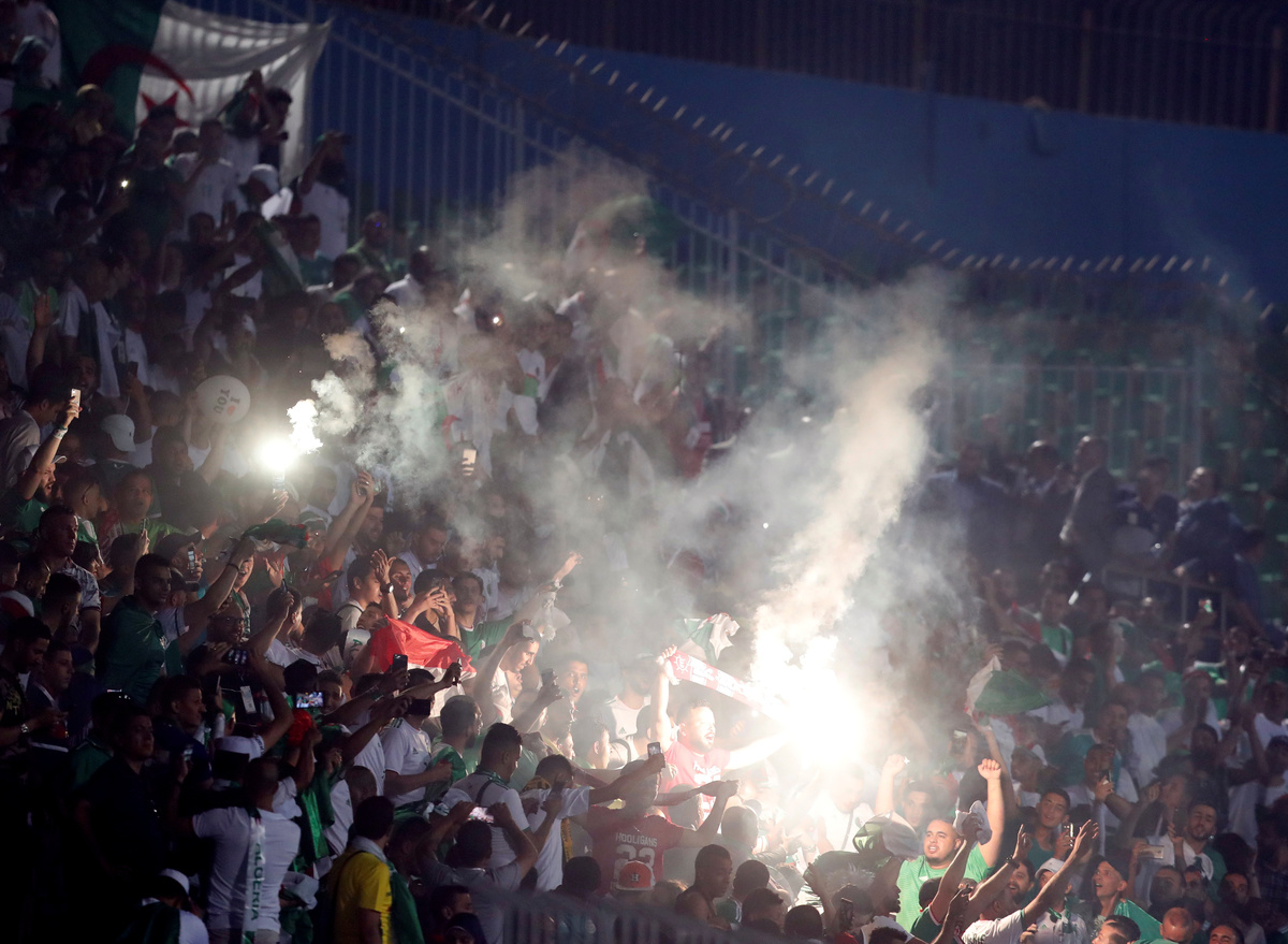 Soccer Football - Africa Cup of Nations 2019 - Group C - Algeria v Kenya - 30 June Stadium, Cairo, Egypt - June 23, 2019 Algeria's Riyad Mahrez celebrates scoring their second goal with Baghdad Bounedjah and team mates REUTERS/Amr Abdallah DalshSoccer Football - Africa Cup of Nations 2019 - Group C - Algeria v Kenya - 30 June Stadium, Cairo, Egypt - June 23, 2019 Algeria fans celebrate at the end of the match with flares REUTERS/Amr Abdallah DalshSoccer Football - Africa Cup of Nations 2019 - Group C - Algeria v Kenya - 30 June Stadium, Cairo, Egypt - June 23, 2019 Algeria's Riyad Mahrez scores their second goal REUTERS/Amr Abdallah Dalsh