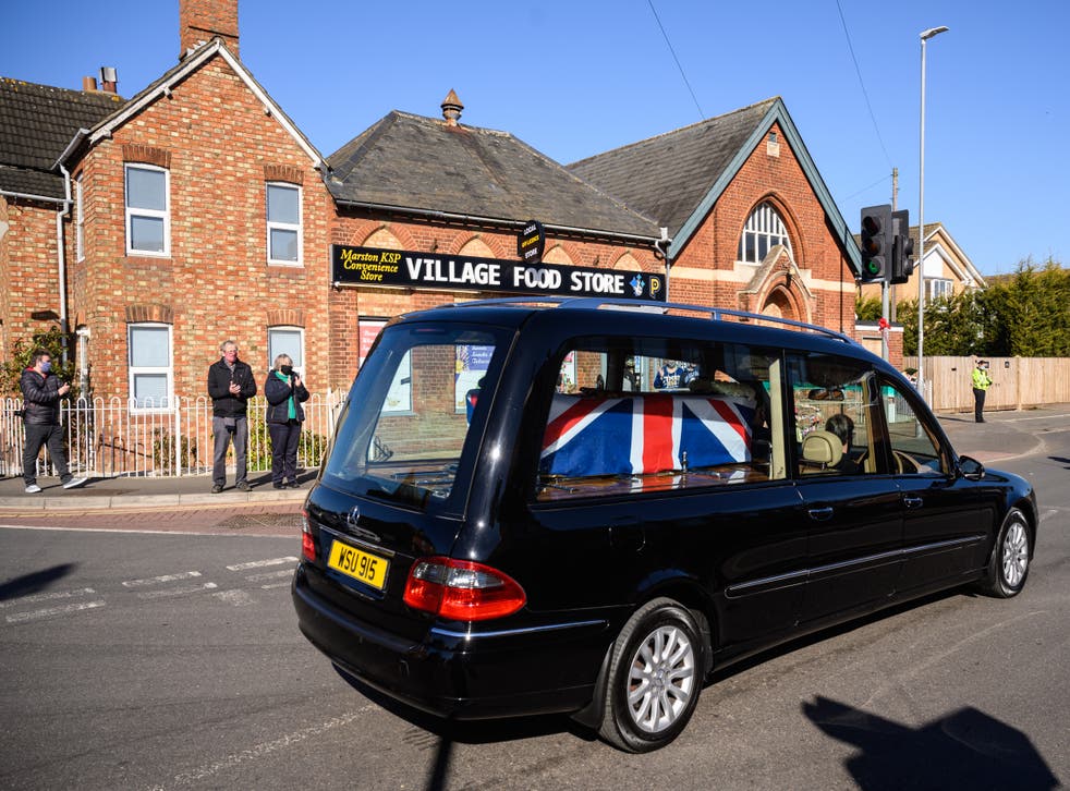 The funeral cortege had set off from Sir Tom’s home in Marston Moretaine at 11.30am.