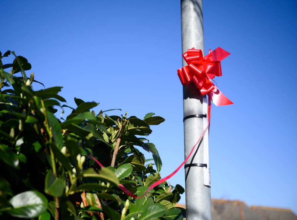 Red ribbons were tied to lampposts in the village as a mark of respect.