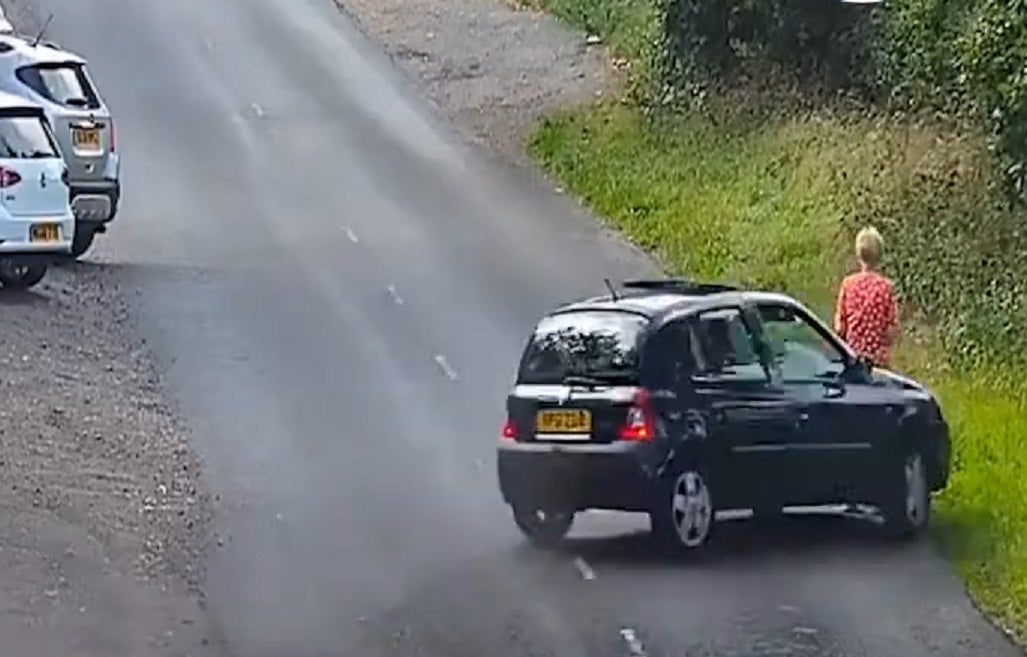 It showed the blue Renault losing control in a cloud of tyre smoke, then crossing the carriageway, hitting Ms Faulkner on the opposite side of the road, before disappearing into undergrowth.