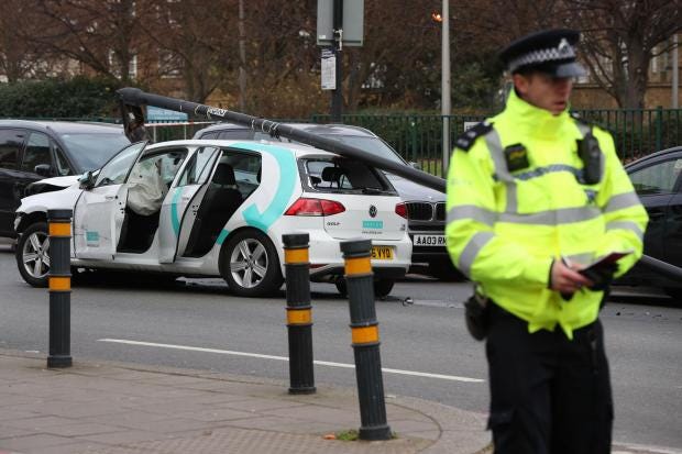 The Metropolitan Police said five men aged between 23 and 42 were injured when a car hit a number of pedestrians on Stockwell Road near the junction of Sidney Road, in south-west London, just before 3am.