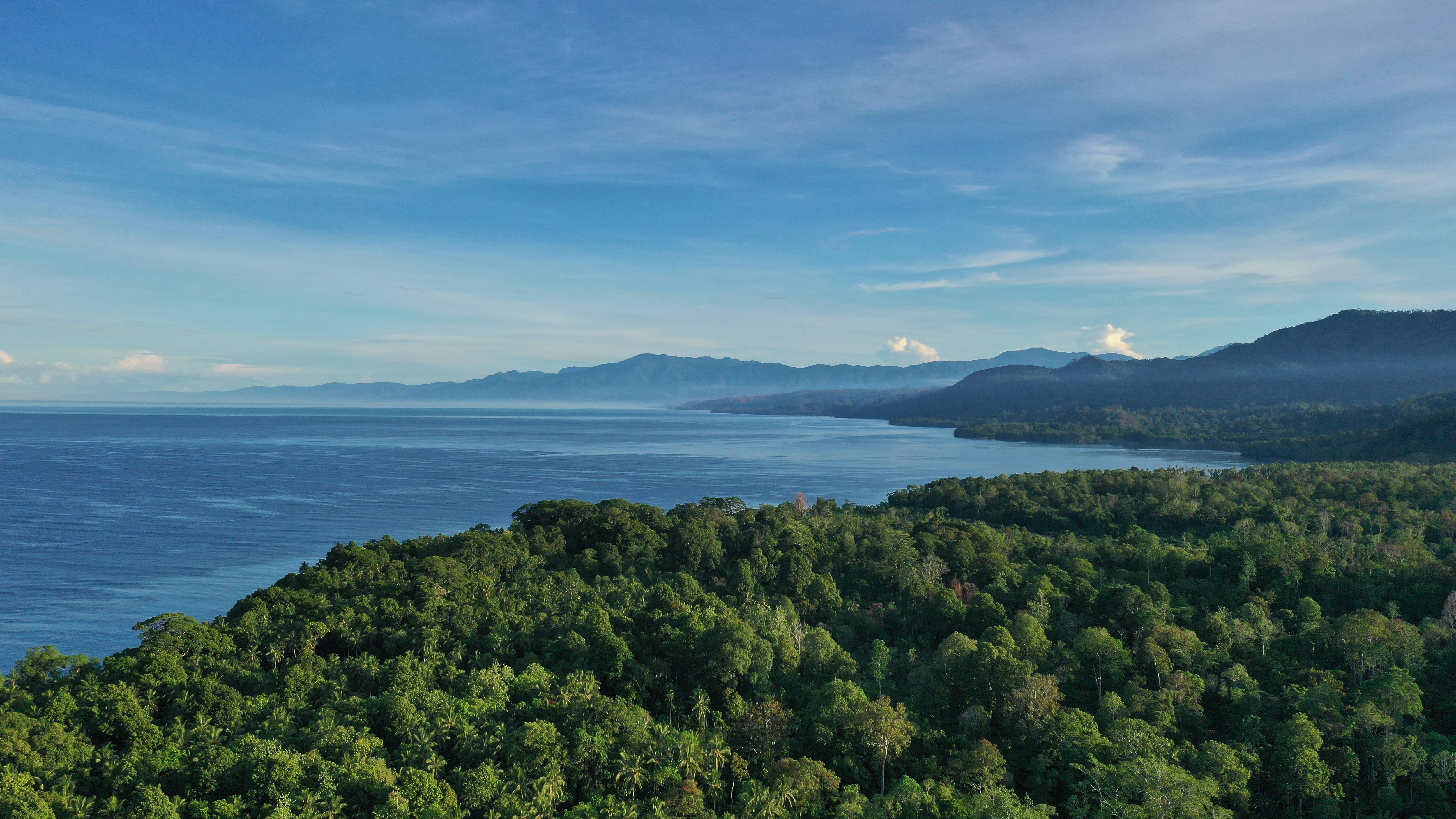 The south-western shores of New Ireland, Papua New Guinea, are fringed by pristine rainforest.