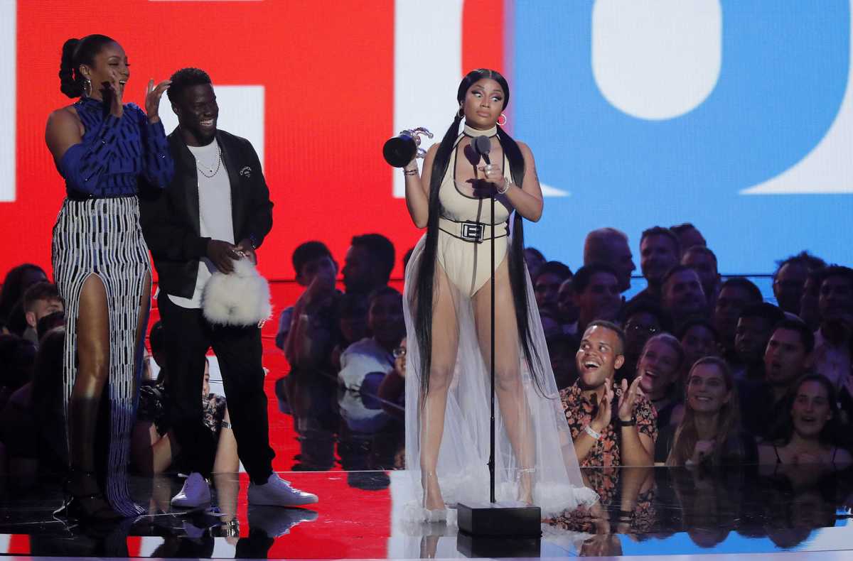 2018 MTV Video Music Awards - Show - Radio City Music Hall, New York, U.S., August 20, 2018 - Jennifer Lopez accepts the Michael Jackson Video Vanguard Award as presenter Shawn Mendes applauds. REUTERS/Lucas Jackson2018 MTV Video Music Awards - Photo Room - Radio City Music Hall, New York, U.S., August 20, 2018. - Post Malone poses backstage with his Song of the Year award for "Rockstar." REUTERS/Carlo Allegri2018 MTV Video Music Awards - Show - Radio City Music Hall, New York, U.S., August 20, 2018 - Ariana Grande accepts the Best Pop award. REUTERS/Lucas Jackson2018 MTV Video Music Awards - Arrivals - Radio City Music Hall, New York, U.S., August 20, 2018. - Camilla Cabello. REUTERS/Andrew Kelly2018 MTV Video Music Awards - Arrivals - Radio City Music Hall, New York, U.S., August 20, 2018. - Millie Bobby Brown. REUTERS/Andrew Kelly2018 MTV Video Music Awards - Arrivals - Radio City Music Hall, New York, U.S., August 20, 2018. - Logic. REUTERS/Andrew Kelly2018 MTV Video Music Awards - Show - Radio City Music Hall, New York, U.S., August 20, 2018 - Shawn Mendes performs "In My Blood." REUTERS/Lucas Jackson2018 MTV Video Music Awards - Arrivals - Radio City Music Hall, New York, U.S., August 20, 2018. - Rita Ora. REUTERS/Andrew KellyMarshmello. REUTERS/Andrew Kelly2018 MTV Video Music Awards - Show - Radio City Music Hall, New York, U.S., August 20, 2018 - Kevin Hart and Tiffany Haddish host. REUTERS/Lucas Jackson2018 MTV Video Music Awards - Arrivals - Radio City Music Hall, New York, U.S., August 20, 2018. - Amber Rose. REUTERS/Andrew Kelly2018 MTV Video Music Awards - Show - Radio City Music Hall, New York, U.S., August 20, 2018 - Nicki Minaj accepts the Best Hip Hop award. REUTERS/Lucas Jackson2018 MTV Video Music Awards - Show - Radio City Music Hall, New York, U.S., August 20, 2018 - Ariana Grande performs "God Is a Woman." REUTERS/Lucas JacksonREFILE - UPDATING SLUG 2018 MTV Video Music Awards - Show - Radio City Music Hall, New York, U.S., August 20, 2018 - Anna Kendrick and Blake Lively perform with The Rockettes. REUTERS/Lucas Jackson2018 MTV Video Music Awards - Show - Radio City Music Hall, New York, U.S., August 20, 2018 - Jennifer Lopez performs. REUTERS/Lucas Jackson2018 MTV Video Music Awards - Arrivals - Radio City Music Hall, New York, U.S., August 20, 2018. - Aerosmith. REUTERS/Andrew Kelly2018 MTV Video Music Awards - Arrivals - Radio City Music Hall, New York, U.S., August 20, 2018. - Cardi B. REUTERS/Andrew Kelly2018 MTV Video Music Awards - Photo Room - Radio City Music Hall, New York, U.S., August 20, 2018. - (L-R) The Backstreet Boys, Howie Dorough, Nick Carter, Brian Littrell, AJ McLean, and Kevin Richardson, pose backstage. REUTERS/Carlo Allegri2018 MTV Video Music Awards - Arrivals - Radio City Music Hall, New York, U.S., August 20, 2018. - Madison Beer. REUTERS/Andrew Kelly2018 MTV Video Music Awards - Arrivals - Radio City Music Hall, New York, U.S., August 20, 2018. - DJ Khaled with wife, Nicole Tuck, and son Asahd Tuck Khaled. REUTERS/Andrew Kelly2018 MTV Video Music Awards - Arrivals - Radio City Music Hall, New York, U.S., August 20, 2018. - Olivia Munn. REUTERS/Andrew Kelly2018 MTV Video Music Awards - Arrivals - Radio City Music Hall, New York, U.S., August 20, 2018. - Anna Kendrick. REUTERS/Andrew Kelly2018 MTV Video Music Awards - Show - Radio City Music Hall, New York, U.S., August 20, 2018 - Logic performs "One Day". REUTERS/Lucas Jackson2018 MTV Video Music Awards - Arrivals - Radio City Music Hall, New York, U.S., August 20, 2018. - Kylie Jenner. REUTERS/Andrew Kelly2018 MTV Video Music Awards - Show - Radio City Music Hall, New York, U.S., August 20, 2018 - Brendon Urie of Panic! at the Disco performs "High Hopes." REUTERS/Lucas Jackson2018 MTV Video Music Awards - Arrivals - Radio City Music Hall, New York, U.S., August 20, 2018. - Maddie Ziegler. REUTERS/Andrew Kelly2018 MTV Video Music Awards - Arrivals - Radio City Music Hall, New York, U.S., August 20, 2018. - Tyga. REUTERS/Andrew Kelly2018 MTV Video Music Awards - Arrivals - Radio City Music Hall, New York, U.S., August 20, 2018. - Tiffany Haddish. REUTERS/Andrew Kelly