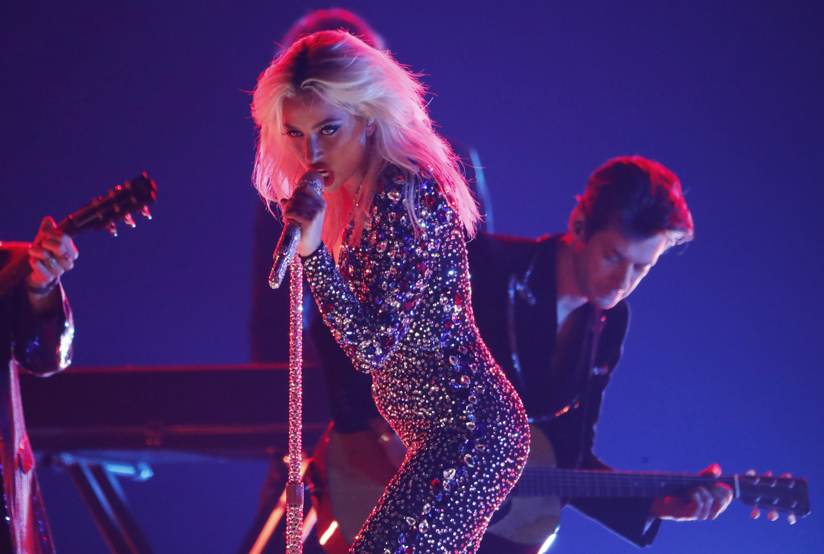 61st Grammy Awards - Show - Los Angeles, California, U.S., February 10, 2019 - Lady Gaga wins Best Pop Duo/Group Performance for "Shallow" with Bradley Cooper (not in photo). REUTERS/Mike Blake61st Grammy Awards - Show - Los Angeles, California, U.S., February 10, 2019 - Cardi B performs. REUTERS/Mike Blake61st Grammy Awards - Show - Los Angeles, California, U.S., February 10, 2019 - Drake wins Best Rap Song for "God's Plan". REUTERS/Mike Blake61st Grammy Awards - Show - Los Angeles, California, U.S., February 10, 2019 - Lady Gaga, Jennifer Lopez, Alicia Keys, former first lady Michelle Obama and Jada Pinkett Smith. REUTERS/Mike Blake61st Grammy Awards - Show - Los Angeles, California, U.S., February 10, 2019 - Lady Gaga performs. REUTERS/Mike Blake61st Grammy Awards - Show - Los Angeles, California, U.S., February 10, 2019 - Anthony Kiedis and Flea of The Red Hot Chili Peppers perform with Post Malone. REUTERS/Mike Blake61st Grammy Awards - Show - Los Angeles, California, U.S., February 10, 2019 - Alicia Keys performs "Killy Me Softly". REUTERS/Mike Blake61st Grammy Awards - Show - Los Angeles, California, U.S., February 10, 2019 - Post Malone performs REUTERS/Mike Blake61st Grammy Awards - Show - Los Angeles, California, U.S., February 10, 2019 - Phillip Sweet, Karen Fairchild, Dolly Parton, Kimberly Schlapman and Jimi Westbrook perform. REUTERS/Mike Blake61st Grammy Awards - Show - Los Angeles, California, U.S., February 10, 2019 - Maren Morris, Dolly Parton and Miley Cyrus perform REUTERS/Mike Blake61st Grammy Awards - Show - Los Angeles, California, U.S., February 10, 2019 - Katy Perry, Dolly Parton and Kacey Musgraves perform. REUTERS/Mike Blake61st Grammy Awards - Show - Los Angeles, California, U.S., February 10, 2019 - Diana Ross performs. REUTERS/Mike Blake61st Grammy Awards - Show - Los Angeles, California, U.S., February 10, 2019 - Dolly Parton and Miley Cyrus perform "Jolene". REUTERS/Mike Blake61st Grammy Awards - Show - Los Angeles, California, U.S., February 10, 2019 - Kacey Musgraves wins Best Country Album for "Golden Hour". REUTERS/Mike Blake61st Grammy Awards - Show - Los Angeles, California, U.S., February 10, 2019 - Miley Cyrus and Shawn Mendes perform. REUTERS/Mike Blake61st Grammy Awards - Show - Los Angeles, California, U.S., February 10, 2019 - Camila Cabello performs. REUTERS/Mike Blake61st Grammy Awards - Show - Los Angeles, California, U.S., February 10, 2019 - Janelle Monae performs. REUTERS/Mike Blake61st Grammy Awards - Show - Los Angeles, California, U.S., February 10, 2019 - H.E.R. performs "Hard Place". REUTERS/Mike Blake61st Grammy Awards - Show - Los Angeles, California, U.S., February 10. 2019 - Brandi Carlile reacts after winning Best Americana Album for "By The Way, I Forgive You". REUTERS/Mike Blake61st Grammy Awards - Show - Los Angeles, California, U.S., February 10. 2019 - Karim Sulayman wins Best Classical Solo Vocal Album for "Songs Of Orpheus - Monteverdi, Caccini, D'India & Landi". REUTERS/Mike Blake61st Grammy Awards - Show - Los Angeles, California, U.S., February 10, 2019 - Shaggy reacts after winning Best Reggae Album for "44/876" REUTERS/Mike Blake61st Grammy Awards - Show - Los Angeles, California, U.S., February 10, 2019 - Annie Clark and Jack Antonoff win Best Rock Song for "Masseduction" REUTERS/Mike Blake61st Grammy Awards - Show - Los Angeles, California, U.S., February 10, 2019 - Cecile McLorin Salvant wins Best Jazz Vocal Album for "The Window" REUTERS/Mike Blake61st Grammy Awards - Photo Room - Los Angeles, California, U.S., February 10, 2019 - Kalani Pe'a reacts after winning Best Regional Roots Music Album for "No 'Ane'I". REUTERS/Mario Anzuoni61st Grammy Awards - Arrivals - Los Angeles, California, U.S., February 10, 2019 - Joy Villa. REUTERS/Lucy Nicholson61st Grammy Awards - Show - Los Angeles, California, U.S., February 10, 2019 - John Daversa wins Best Improvised Jazz Solo for "Don't Fence Me In". REUTERS/Mike Blake61st Grammy Awards - Show - Los Angeles, California, U.S., February 10, 2019 - John Daversa Big Band featuring DACA Artists wins Best Large Jazz Ensemble Album for "American Dreamers: Voices Of Hope, Music Of Freedom" REUTERS/Mike Blake61st Grammy Awards - Arrivals - Los Angeles, California, U.S., February 10, 2019 - Evan Ross and Ashlee Simpson. REUTERS/Lucy Nicholson61st Grammy Awards - Photo Room - Los Angeles, California, U.S., February 10, 2019 - Spanish Harlem Orchestra win Best Tropical Latin Album for "Anniversary". REUTERS/Mario Anzuoni61st Grammy Awards - Arrivals - Los Angeles, California, U.S., February 10, 2019 - Saint Heart. REUTERS/Lucy Nicholson61st Grammy Awards - Arrivals - Los Angeles, California, U.S., February 10, 2019 - Aida Cuevas. REUTERS/Lucy Nicholson61st Grammy Awards - Arrivals - Los Angeles, California, U.S., February 10, 2019 - Ian Fitchuk and Megan Thompson. REUTERS/Lucy Nicholson61st Grammy Awards - Arrivals - Los Angeles, California, U.S., February 10, 2019 - Camila Cabello. REUTERS/Lucy Nicholson61st Grammy Awards - Arrivals - Los Angeles, California, U.S., February 10, 2019 - Weezer. REUTERS/Lucy Nicholson61st Grammy Awards - Arrivals - Los Angeles, California, U.S., February 10, 2019 - FEVER 333. REUTERS/Lucy Nicholson61st Grammy Awards - Photo Room - Los Angeles, California, U.S., February 10, 2019 - Anderson .Paak and his son, Soul Rasheed, pose backstage with his Best Rap Performance award for "Bubblin." REUTERS/Mario Anzuoni