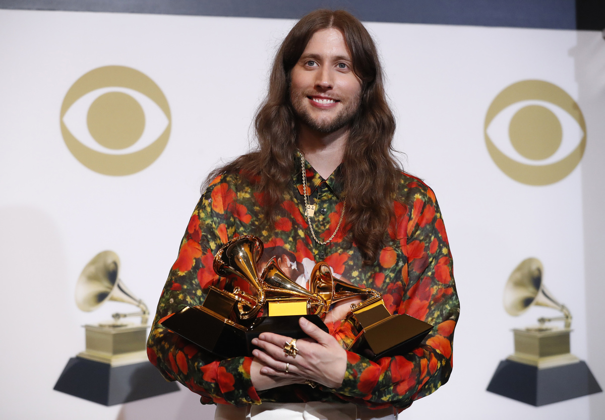 61st Grammy Awards - Photo Room - Los Angeles, California, U.S., February 10, 2019 - Ludwig Goransson poses backstage with his awards for Song of the Year for "This is America," Best Score Soundtrack for Visual Media award for "Black Panther," and for Record of the Year for "This is America." REUTERS/Mario Anzuoni
