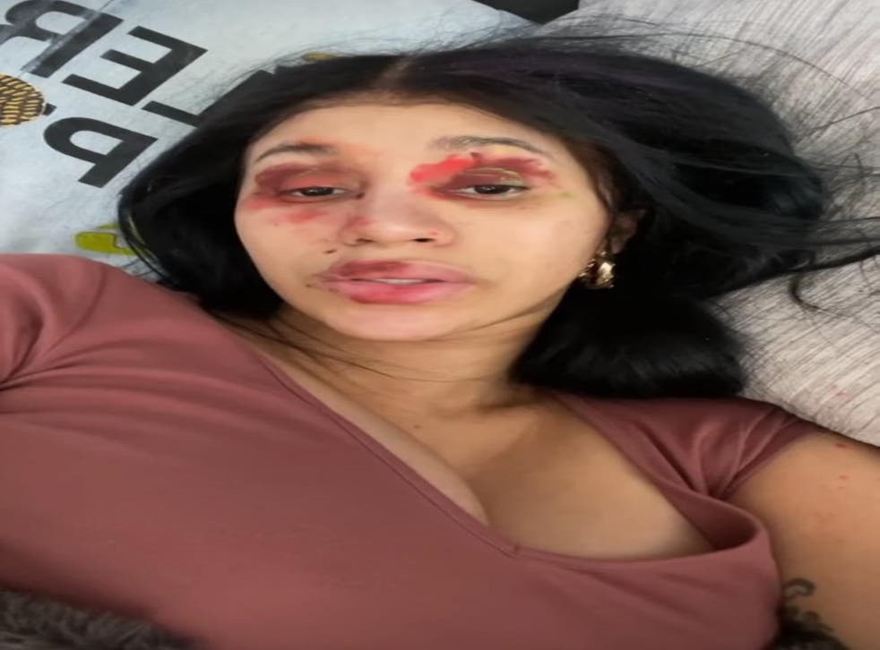 Cardi B has given her young daughter free reign with her make-up collection, and shared the results with her fans.