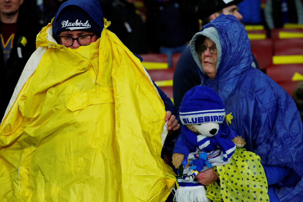 Soccer Football - Premier League - Arsenal v Cardiff City - Emirates Stadium, London, Britain - January 29, 2019 A Cardiff City fan wearing a daffodil as a tribute to Emiliano Sala before the match Action Images via Reuters/Peter Cziborra Soccer Football - Premier League - Arsenal v Cardiff City - Emirates Stadium, London, Britain - January 29, 2019 Cardiff City fans display an Argentina flag as a tribute to Emiliano Sala before the match Action Images via Reuters/Peter Cziborra Soccer Football - Premier League - Arsenal v Cardiff City - Emirates Stadium, London, Britain - January 29, 2019 Cardiff City chief executive Ken Choo wearing a daffodil as a tribute to Emiliano Sala before the match Action Images via Reuters/Peter Cziborra Soccer Football - Premier League - Arsenal v Cardiff City - Emirates Stadium, London, Britain - January 29, 2019 Cardiff City fans display an Argentina flag with daffodils as a tribute to Emiliano Sala before the match REUTERS/Eddie KeoghSoccer Football - Premier League - Arsenal v Cardiff City - Emirates Stadium, London, Britain - January 29, 2019 General view of a Cardiff City fan wearing a daffodil as a tribute to Emiliano Sala REUTERS/Eddie Keogh