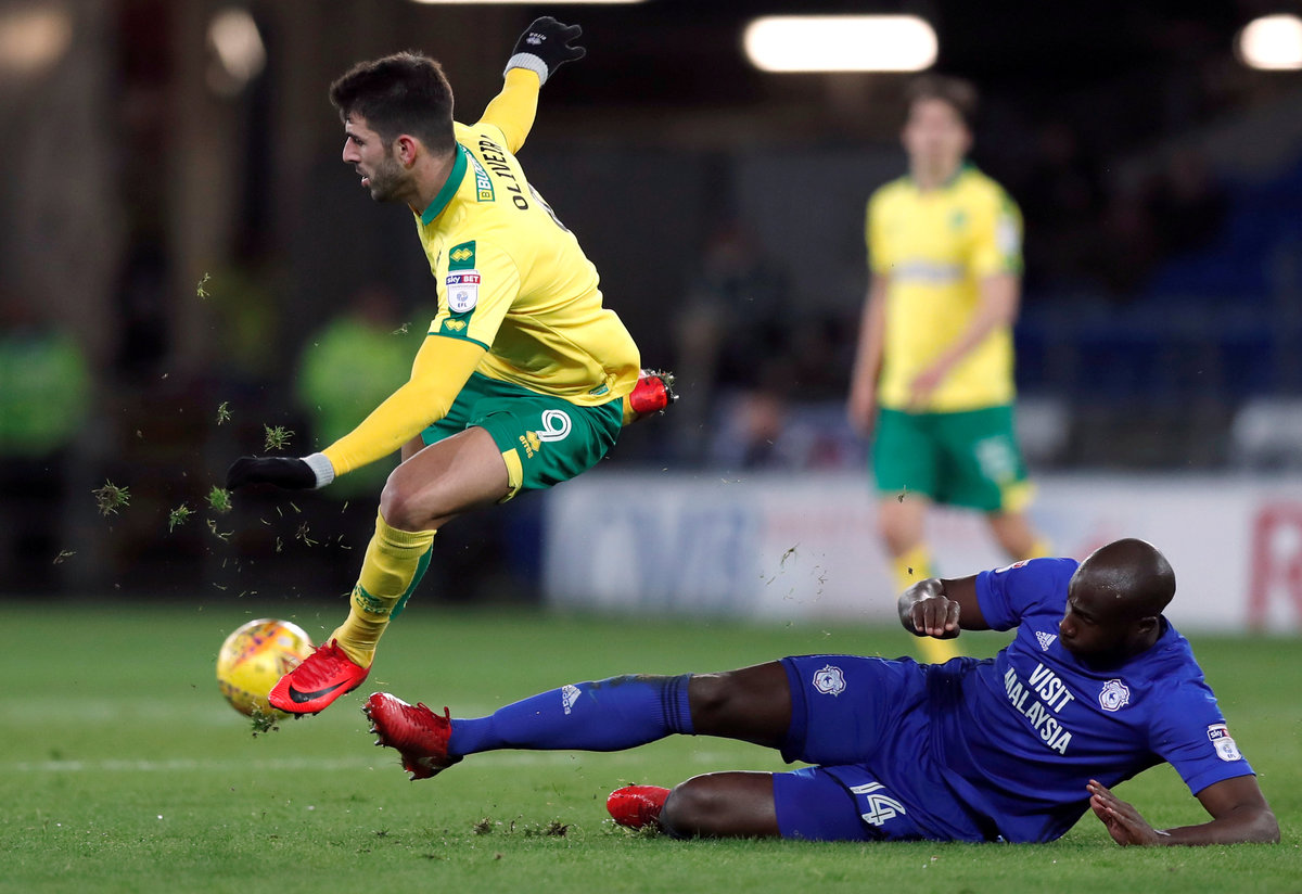 Soccer Football - Championship - Cardiff City vs Norwich City - Cardiff City Stadium, Cardiff, Britain - December 1, 2017 Cardiff City's Souleymane Bamba in action with Norwich City's Nelson Oliveira Action Images/Peter Cziborra