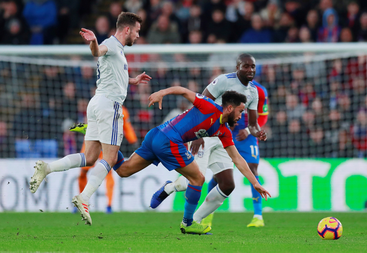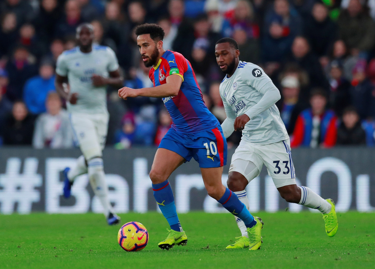 Soccer Football - Premier League - Crystal Palace v Cardiff City - Selhurst Park, London, Britain - December 26, 2018 Crystal Palace's Wilfried Zaha reacts during the match Action Images via Reuters/Andrew Couldridge Soccer Football - Premier League - Crystal Palace v Cardiff City - Selhurst Park, London, Britain - December 26, 2018 Crystal Palace's Andros Townsend in action with Cardiff City's Kadeem Harris.Action Images via Reuters/Andrew Couldridge Soccer Football - Premier League - Crystal Palace v Cardiff City - Selhurst Park, London, Britain - December 26, 2018 Crystal Palace's Andros Townsend in action with Cardiff City's Junior Hoilett.Action Images via Reuters/Andrew CouldridgeSoccer Football - Premier League - Crystal Palace v Cardiff City - Selhurst Park, London, Britain - December 26, 2018 Crystal Palace's Andros Townsend in action with Cardiff City's Joe Ralls.Action Images via Reuters/Andrew Couldridge