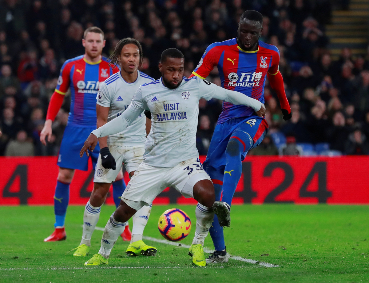 Soccer Football - Premier League - Crystal Palace v Cardiff City - Selhurst Park, London, Britain - December 26, 2018 Cardiff City's Junior Hoilett in action with Crystal Palace's Cheikhou Kouyate Action Images via Reuters/Andrew Couldridge