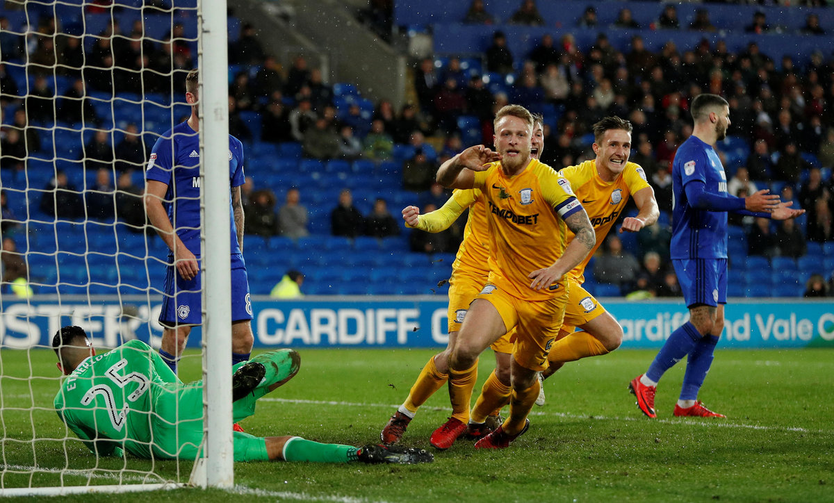 Soccer Football - Championship - Cardiff City vs Preston North End - Cardiff City Stadium, Cardiff, Britain - December 29, 2017 Preston North End's Tom Clarke scores their first goal Action Images/John Sibley