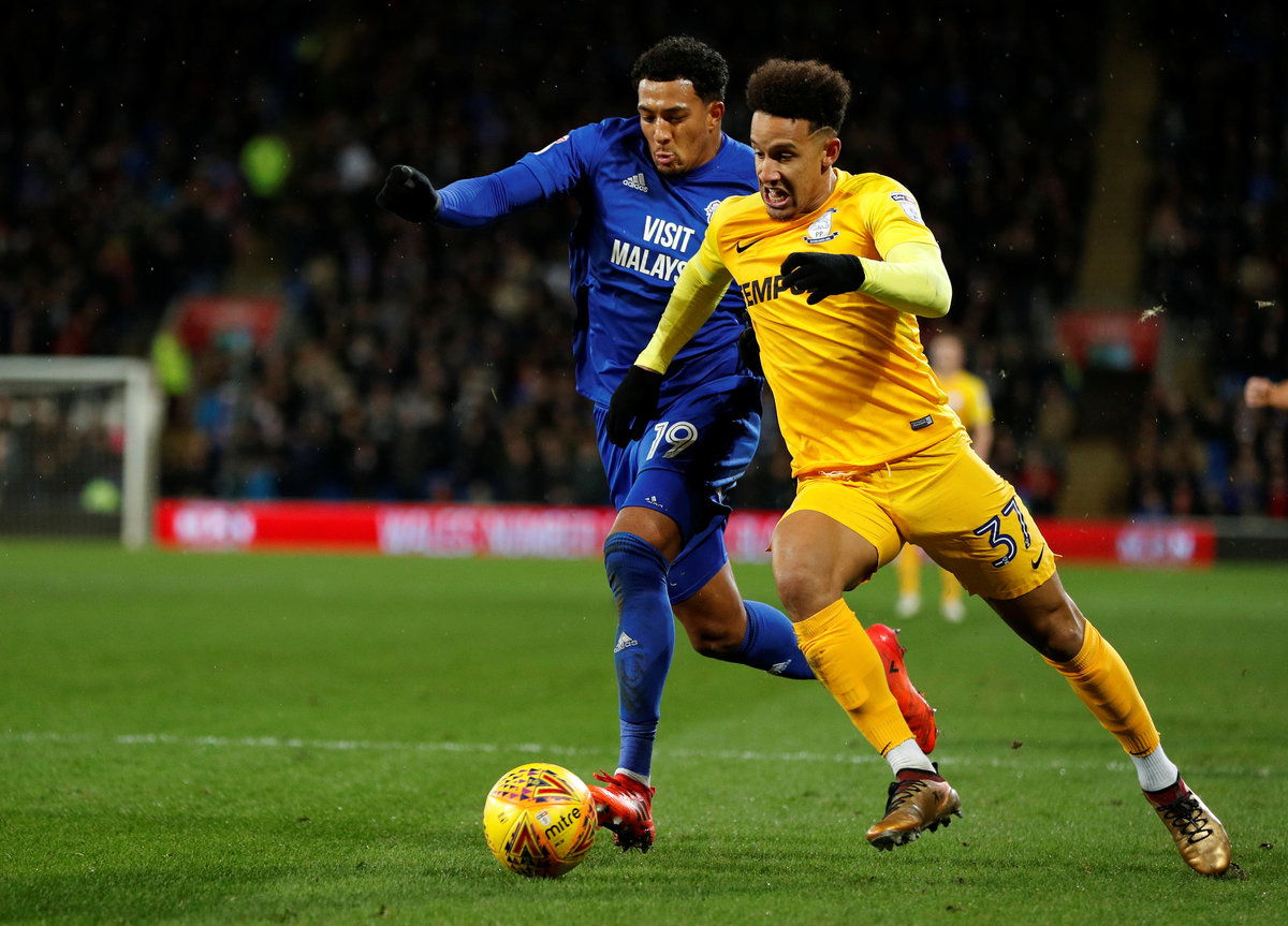 Soccer Football - Championship - Cardiff City vs Preston North End - Cardiff City Stadium, Cardiff, Britain - December 29, 2017 Cardiff City's Nathaniel Mendez-Laing in action with Preston North End’s Callum Robinson Action Images/John Sibley