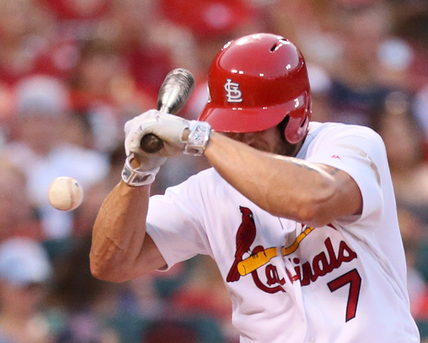 ST. LOUIS_Cardinals manager Mike Matheny took a chance in the bottom of the sixth on Monday night. Pitcher Mike Leake was cruising along, striking out 11 in the first six innings, and had thrown only 88 pitches. But with the pitcher's spot coming up to the plate and runners on first and second, Matheny decided to lift him for a pinch hitter.