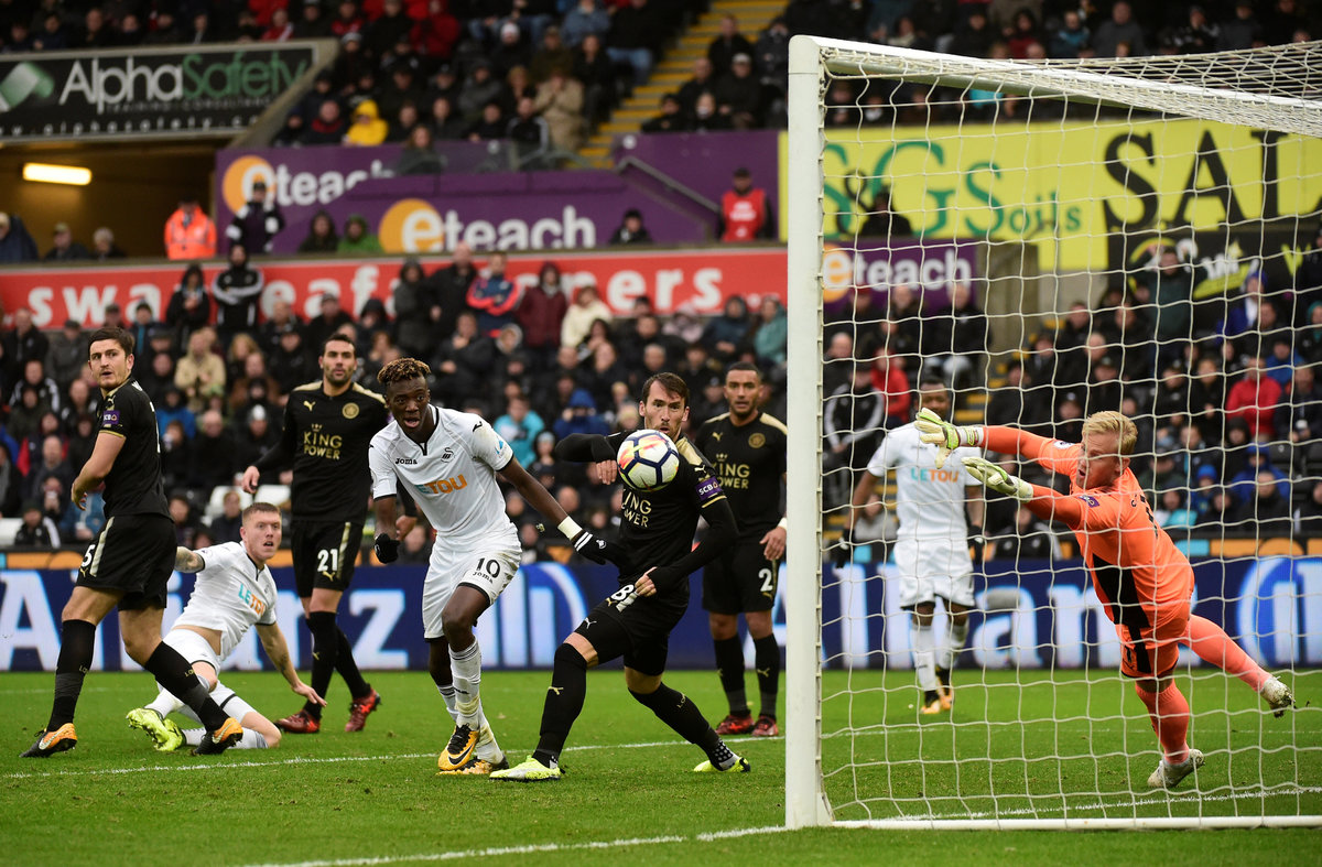 Defender Alfie Mawson pulled one back for Swansea, hooking the ball home following a corner for his first goal of the season and prompting Swansea to pour forward looking for an equaliser.